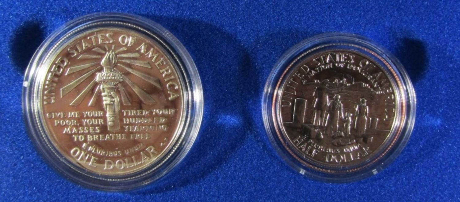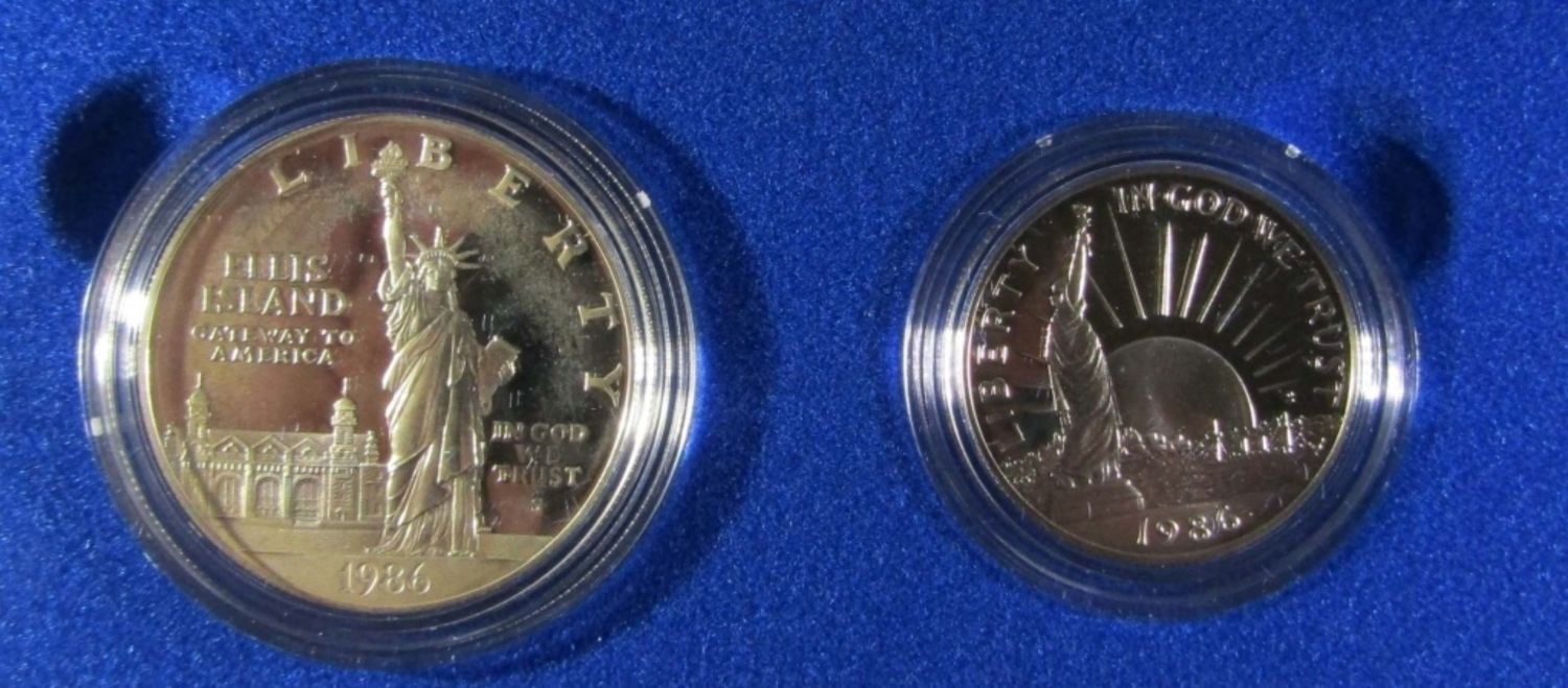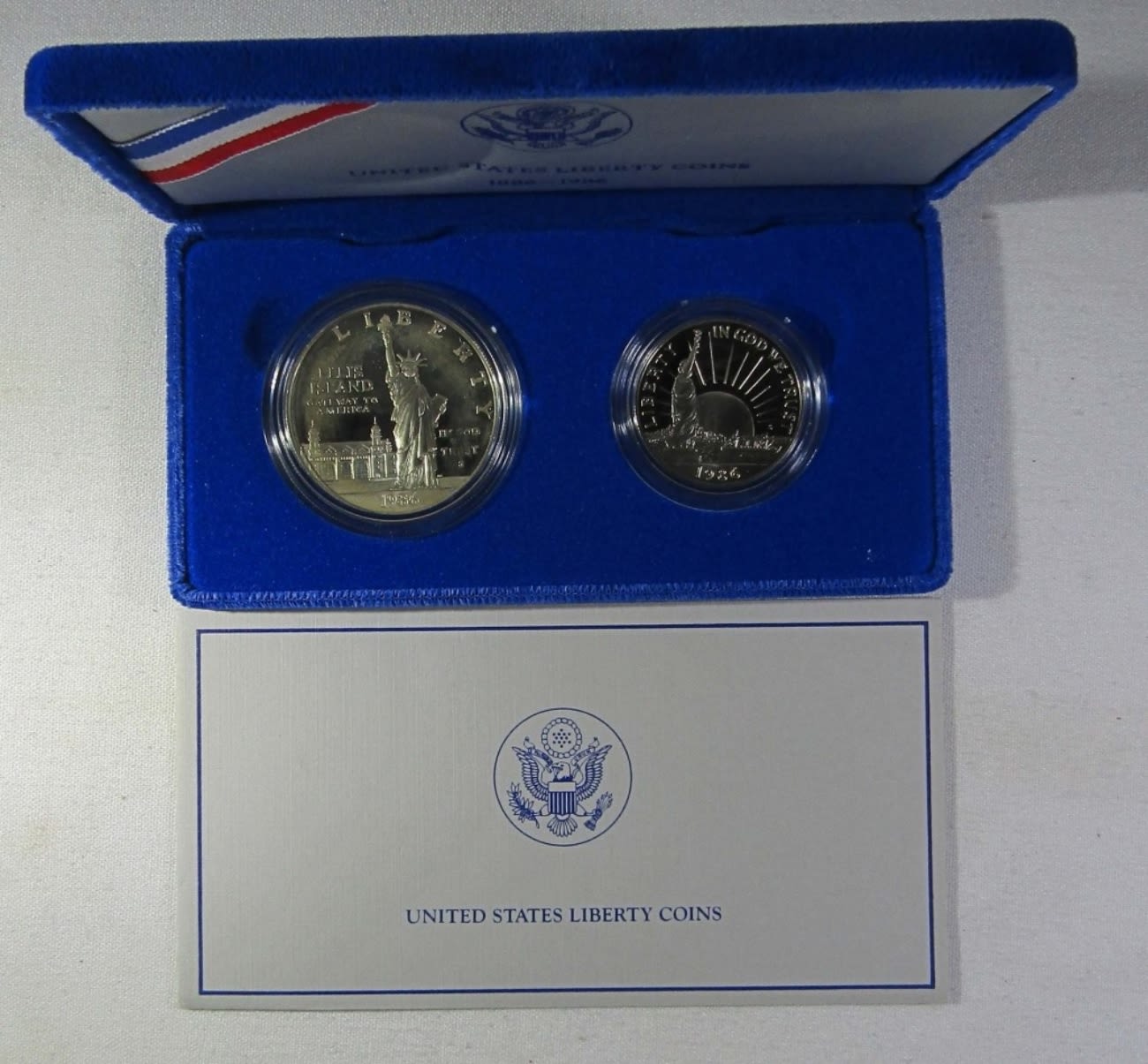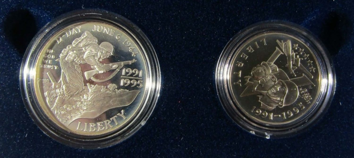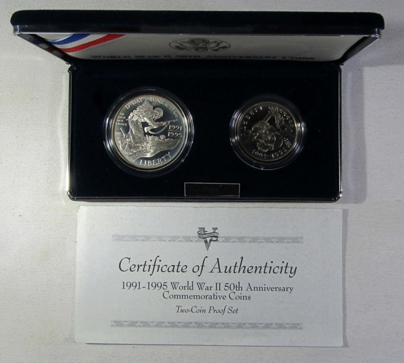 1991-1995 TWO COIN PROOF WW2 50TH ANNIV COINS AND 2PCS 1986 PROOF U.S. LIBERTY COINS