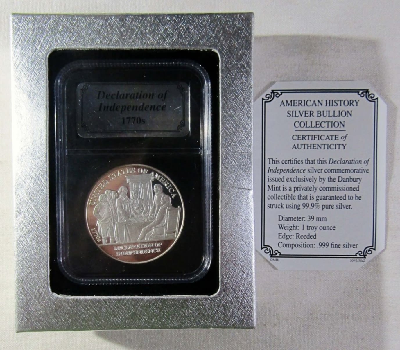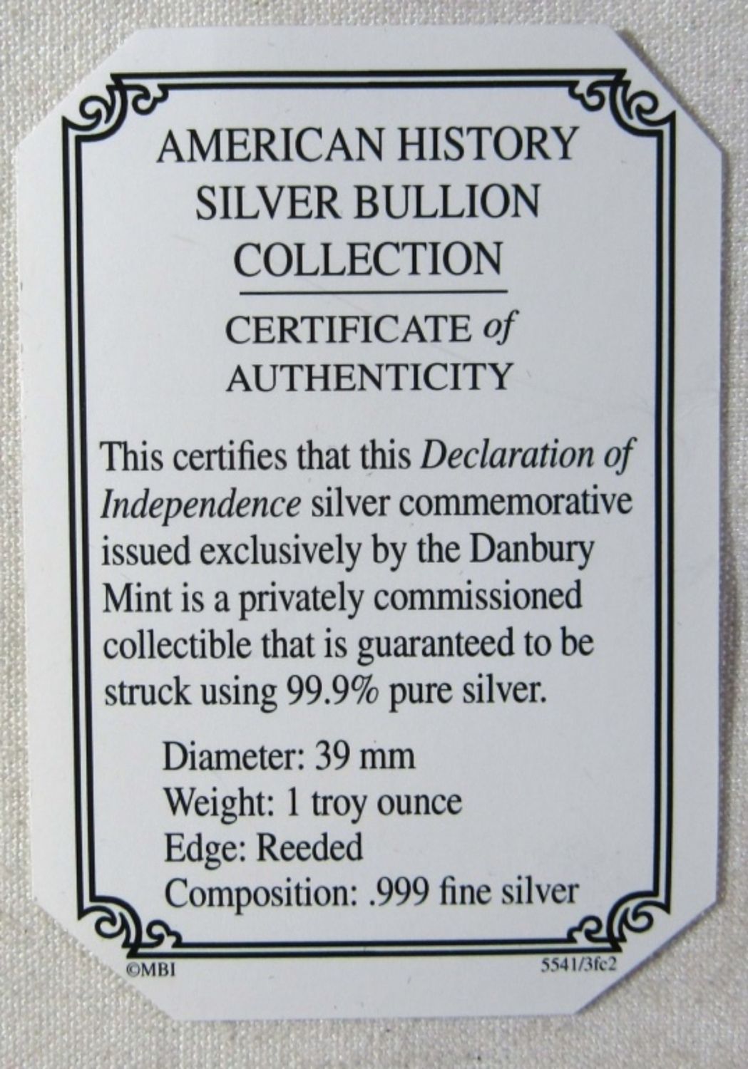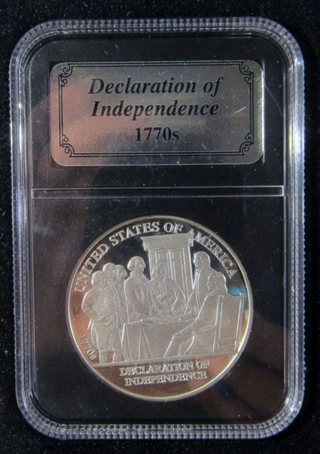 DECLARATION OF INDEPENDENCE COMMEMORATIVE, DANBURY MINT IN SLAB, WITH GIFT BOX & COA