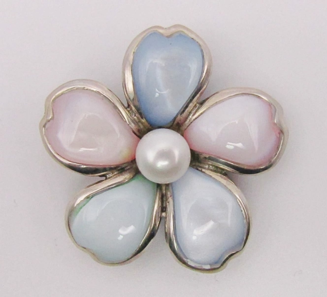 (1)FLOWER WITH LUCITE AND PEARL CENTER-TOTAL 13 DWT