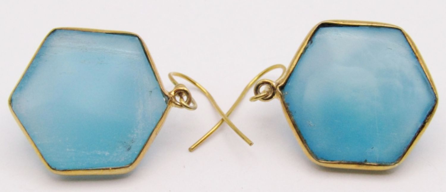 EARRINGS WITH 3-D GEOMETRIC TEAL CENTER