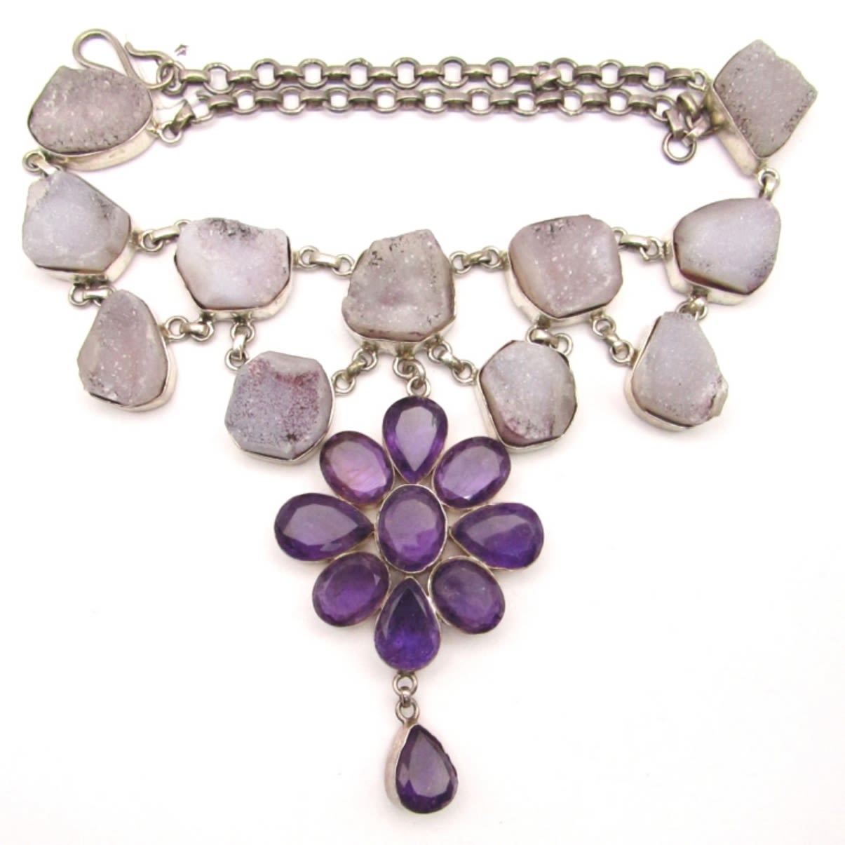 PURPLE SPARKLE STONE & PURPLE AMETHYST – SOLID PIECE – VINTAGE ONE OF A KIND! ( 69 DWT)
