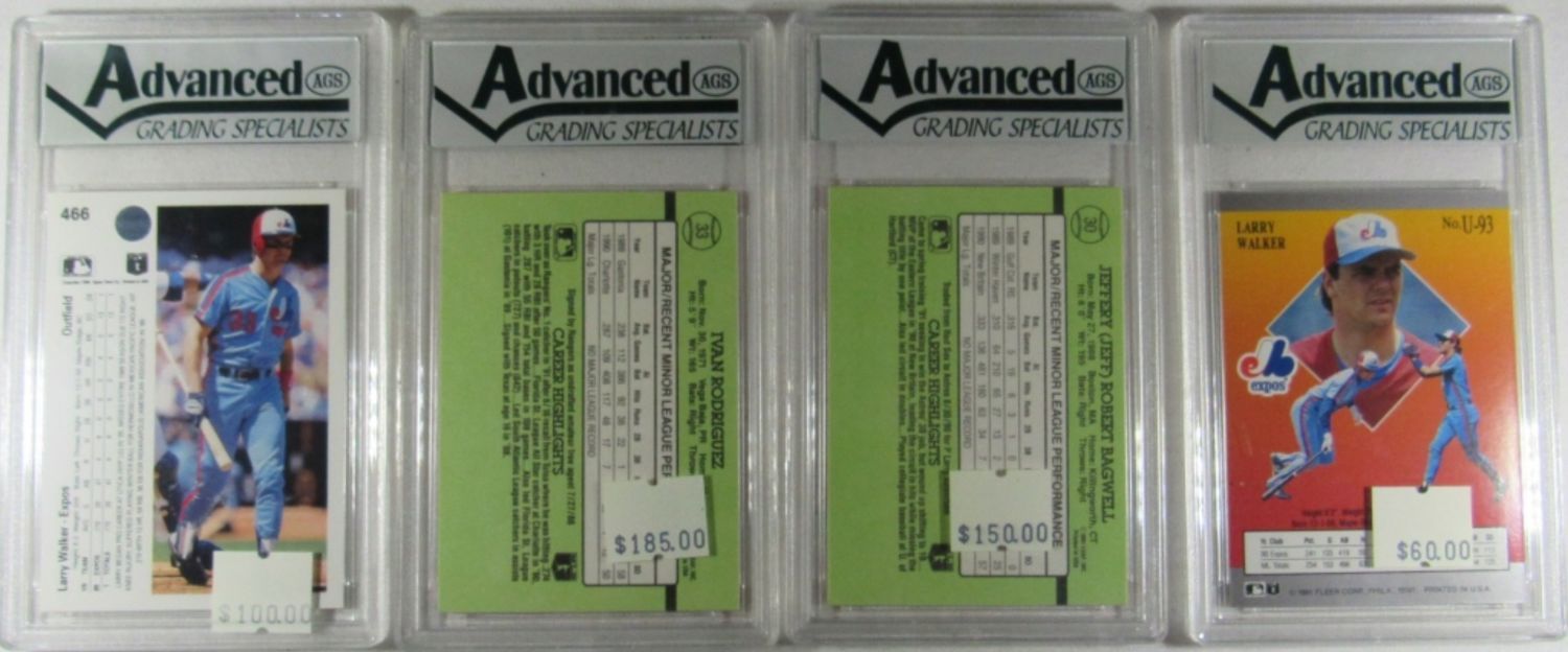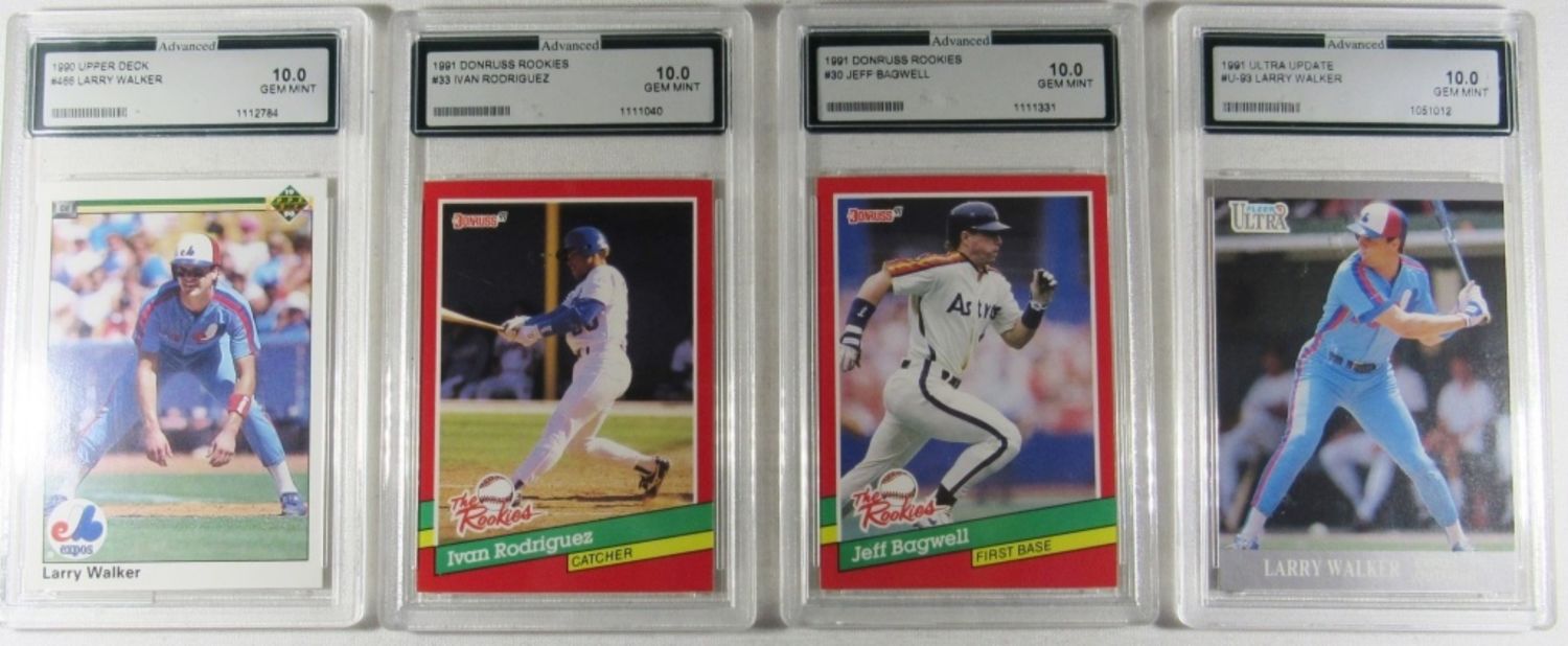 1990 UPPER DECK #466 LARRY WALKER, 1991 DONRUSS ROOKIE #33 IVAN RODRIUEZ, 1991 DONRUSS ROOKIE #30 BAGWELL, 1991 ULTRA UPDATE #U93 WALKER – ALL GEM MINT 10