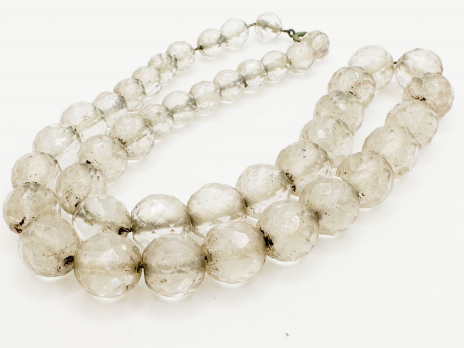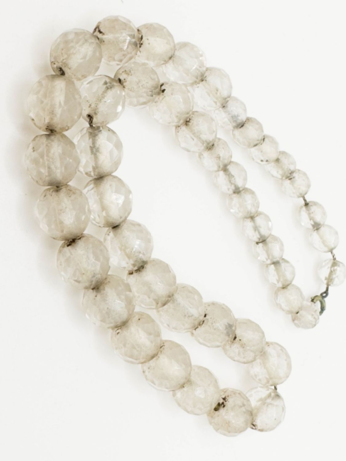 FACETED GLASS BEAD CHOKER NECKLACE, COPPER STRUNG, 17IN IN LENGHT