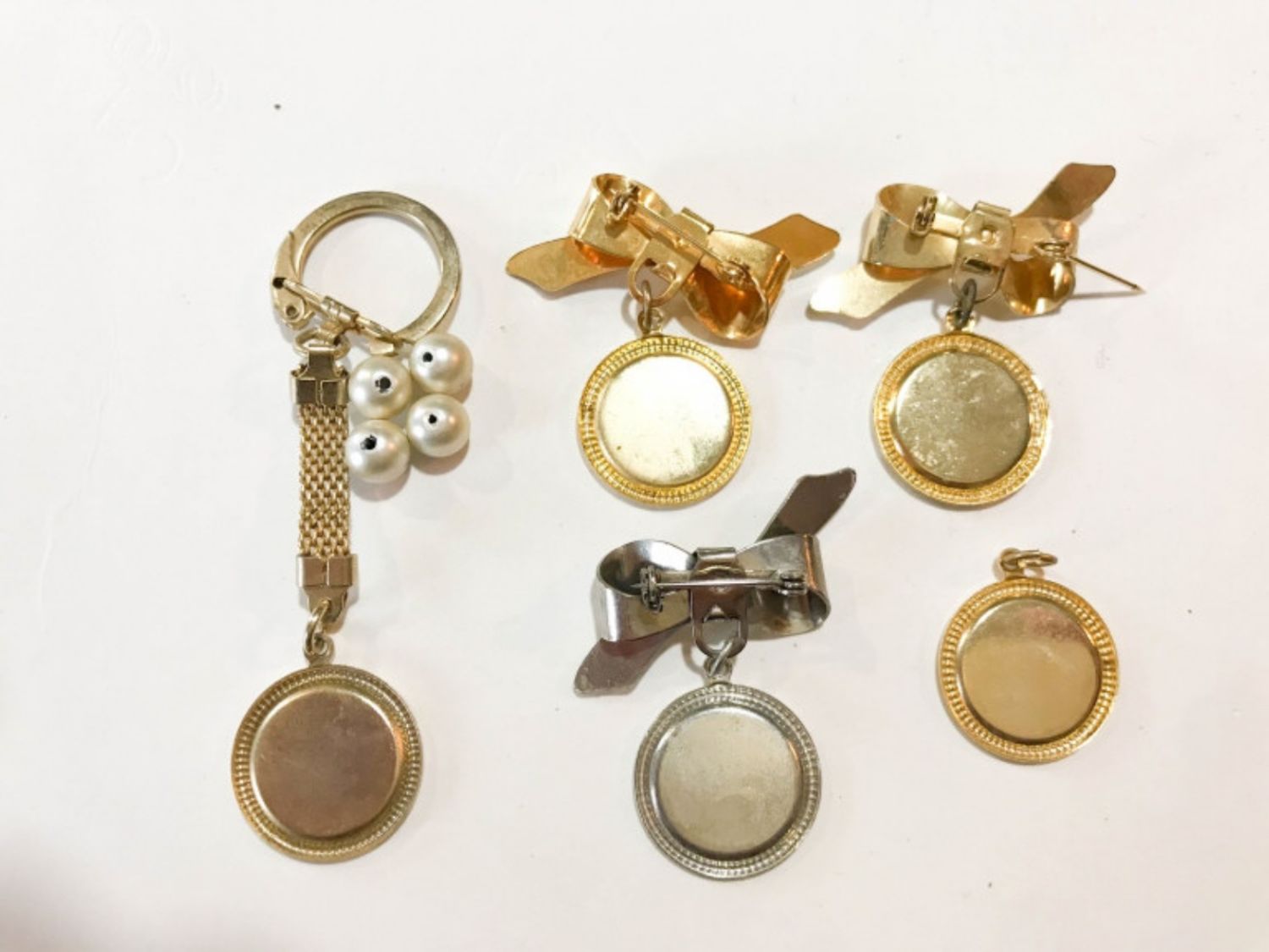 (3) SMALL BROOCHES, PENDANT, & KEYCHAIN