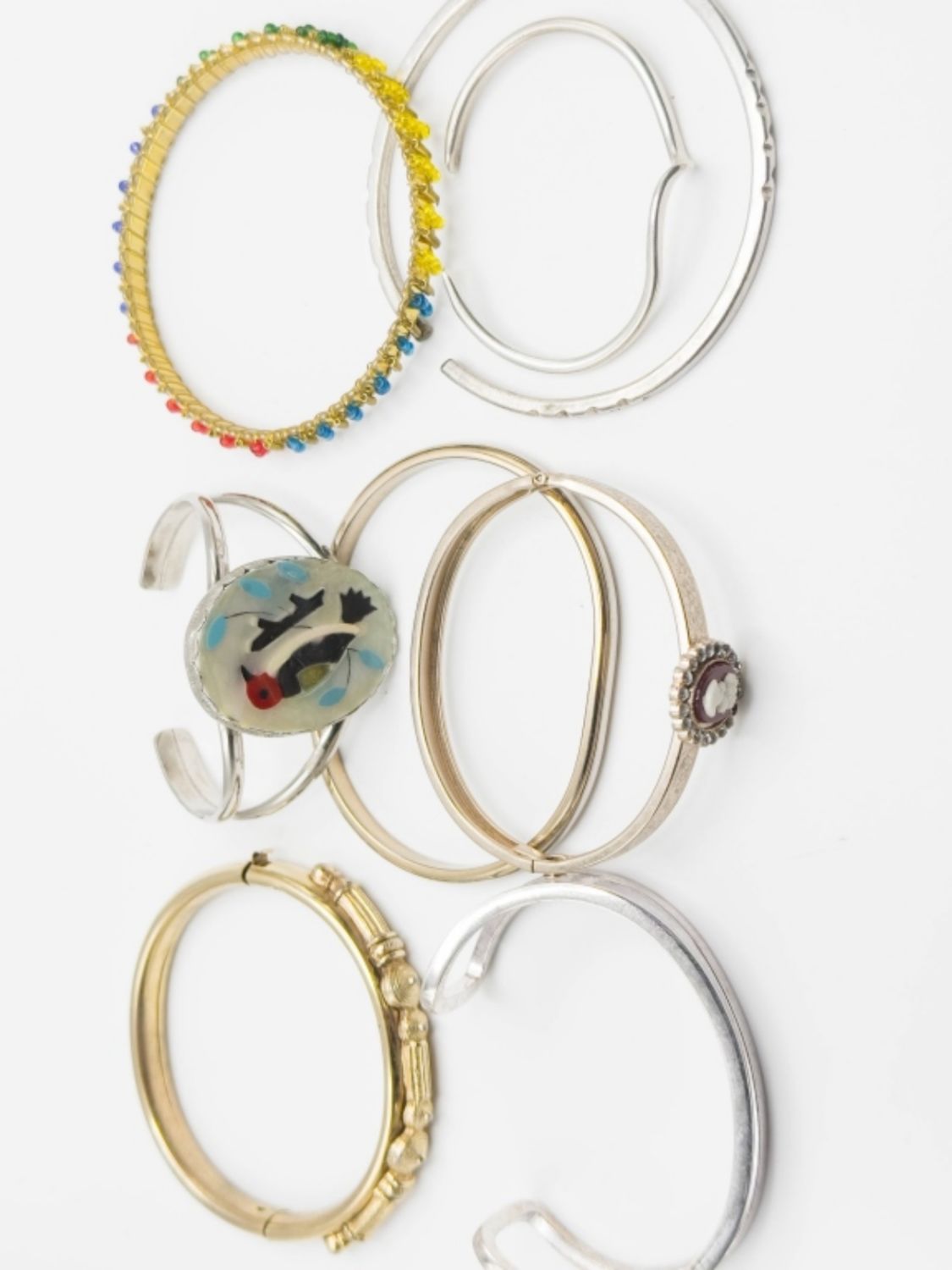 BRACELETS COLLECTION INCLUDES 4 GOLD TONE BANGLES AND 4 SLIVER CUFF BRACELETS