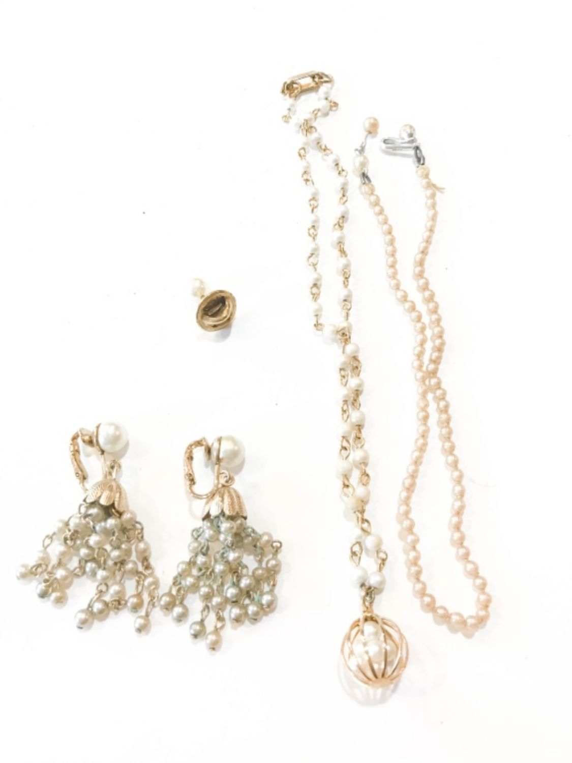 (2) NECKLACES, CLIP ON EARRINGS, & PIN