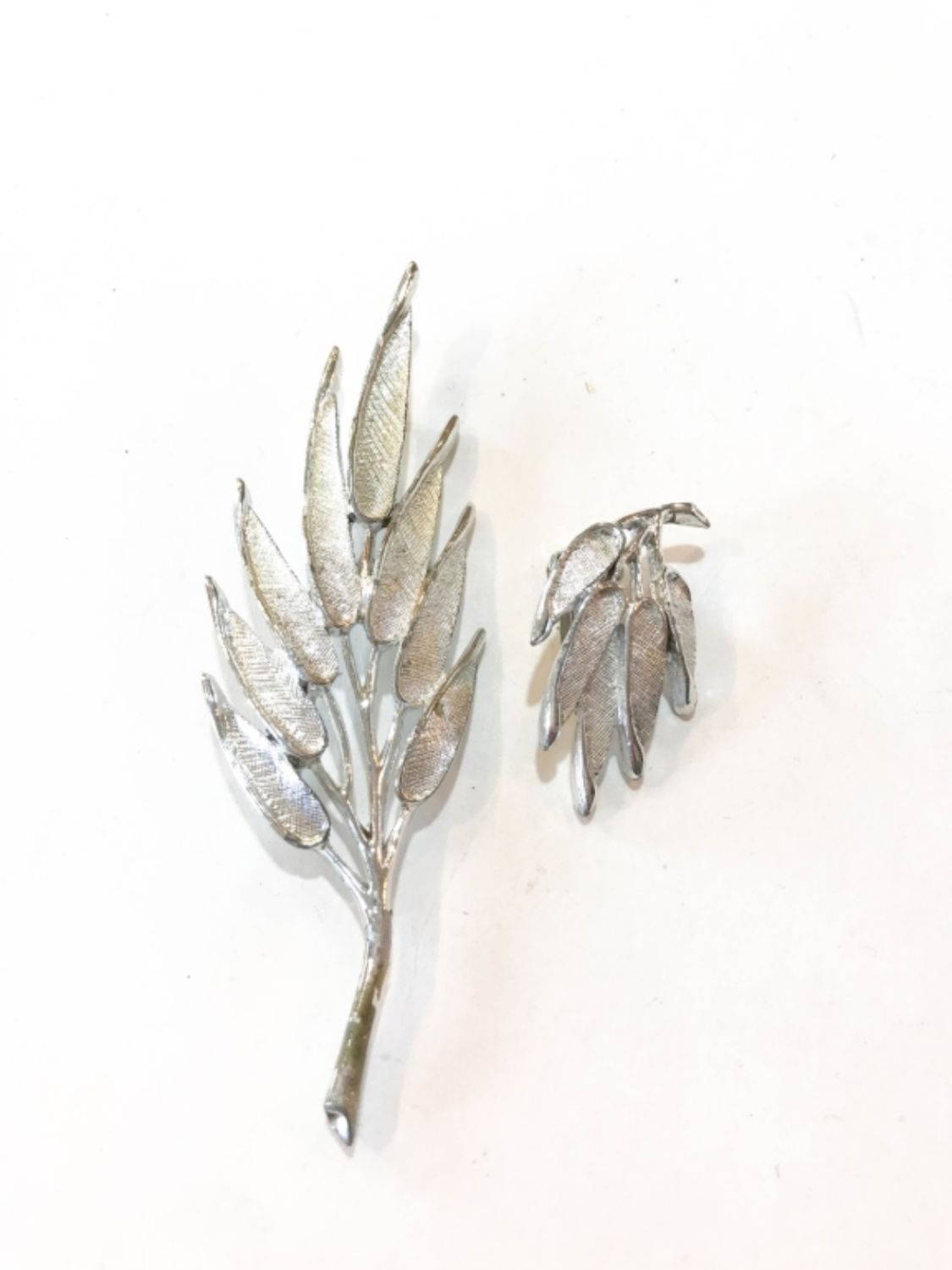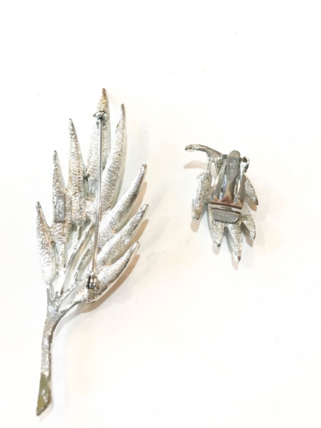 LEAF BRANCH DESIGN BROOCH AND SINGLE CLIP ON EARRING