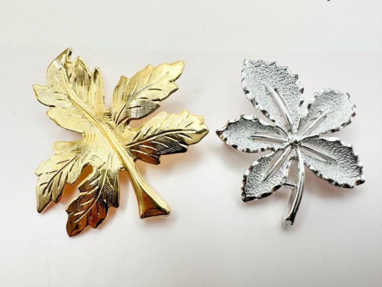 SARAH COVENTRY SILVER LEAF BROOCH MARKED BY MAKER AND ONE GOLD TONE BROOCH WITH NO MARKINGS