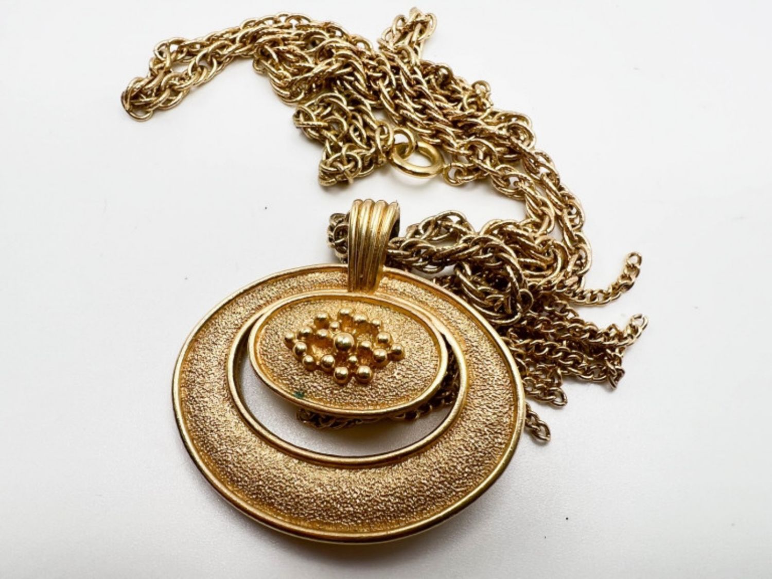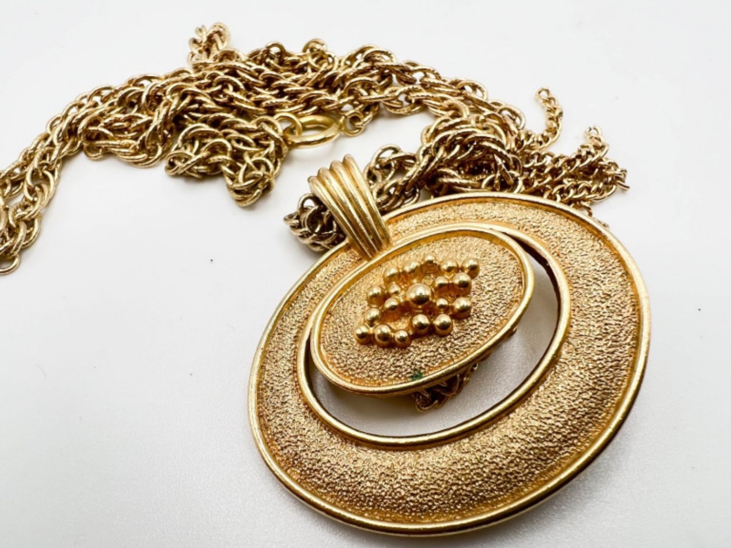 AVON LARGE OVAL PENDANT NECKLACE, 24IN IN LENGTH, MARKED WITH MAKER ON BACK ON PENDANT