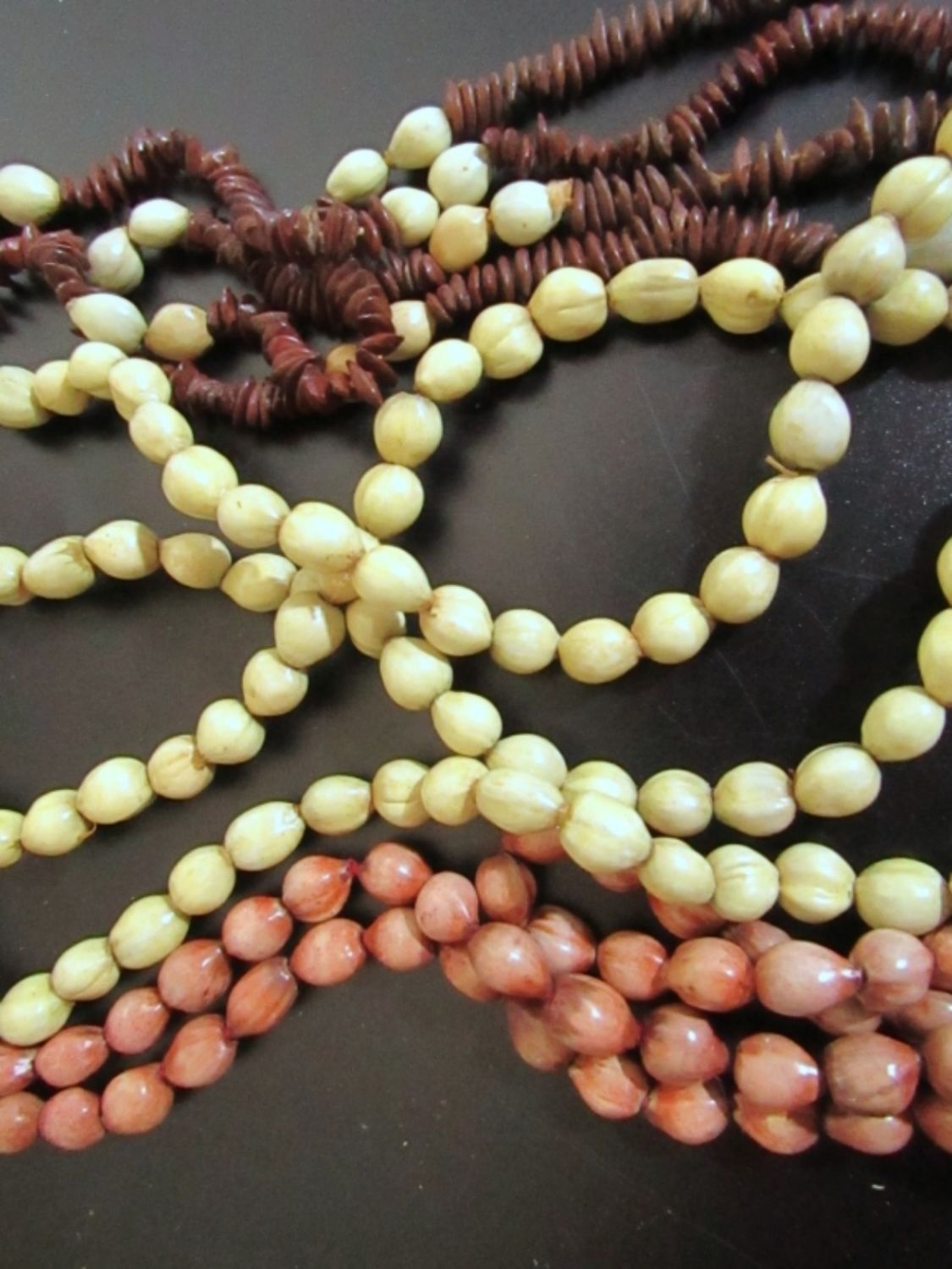 EARTH TONE COLORED BEADS. LENGTHS ARE 35IN 36IN AND 43IN IN LENGTH