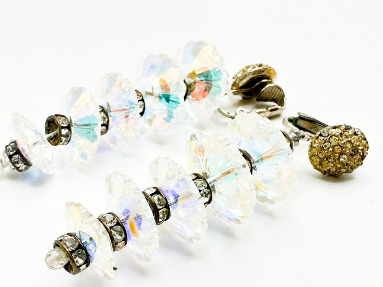 CRYSTAL EARRINGS WITH CLEAR STONES ALSO, UNIQUE LARGE DANGLE EARRINGS, THEY ARE CLIP ONS