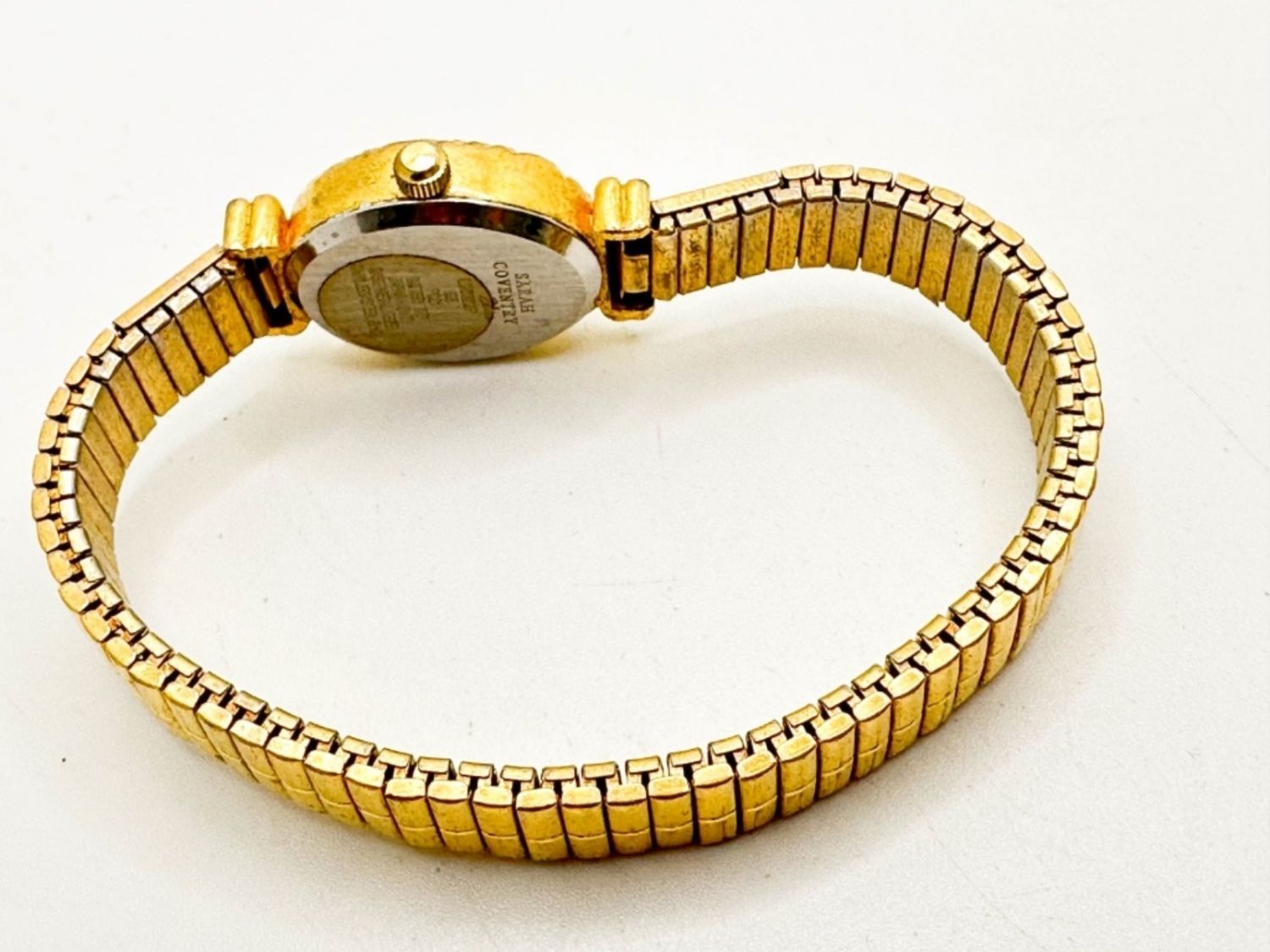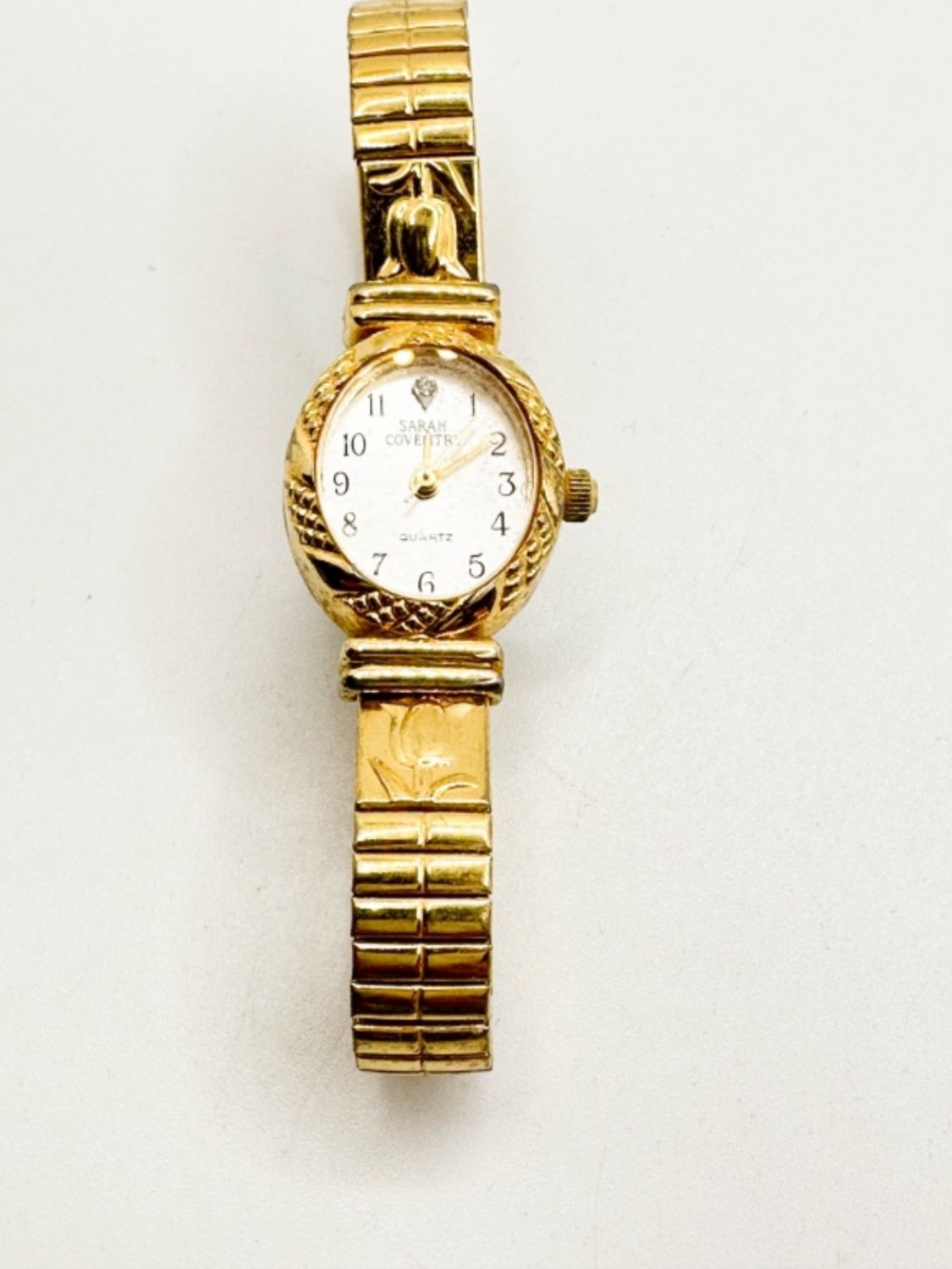 SARAH COVENTRY WATCH WITH ROSE DEATAIL BY THE FACE OF THE WATCH HAS A STREACH BAND, NOT TESTED