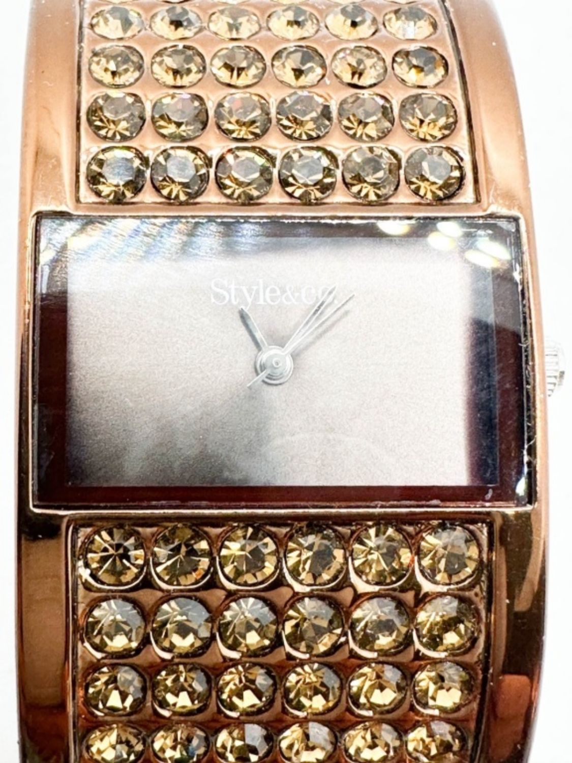 STYLE AND CO CHOCLATE STONE WATCH WITH FOLD OVER CLASP , AMAZING. NOT TESTED