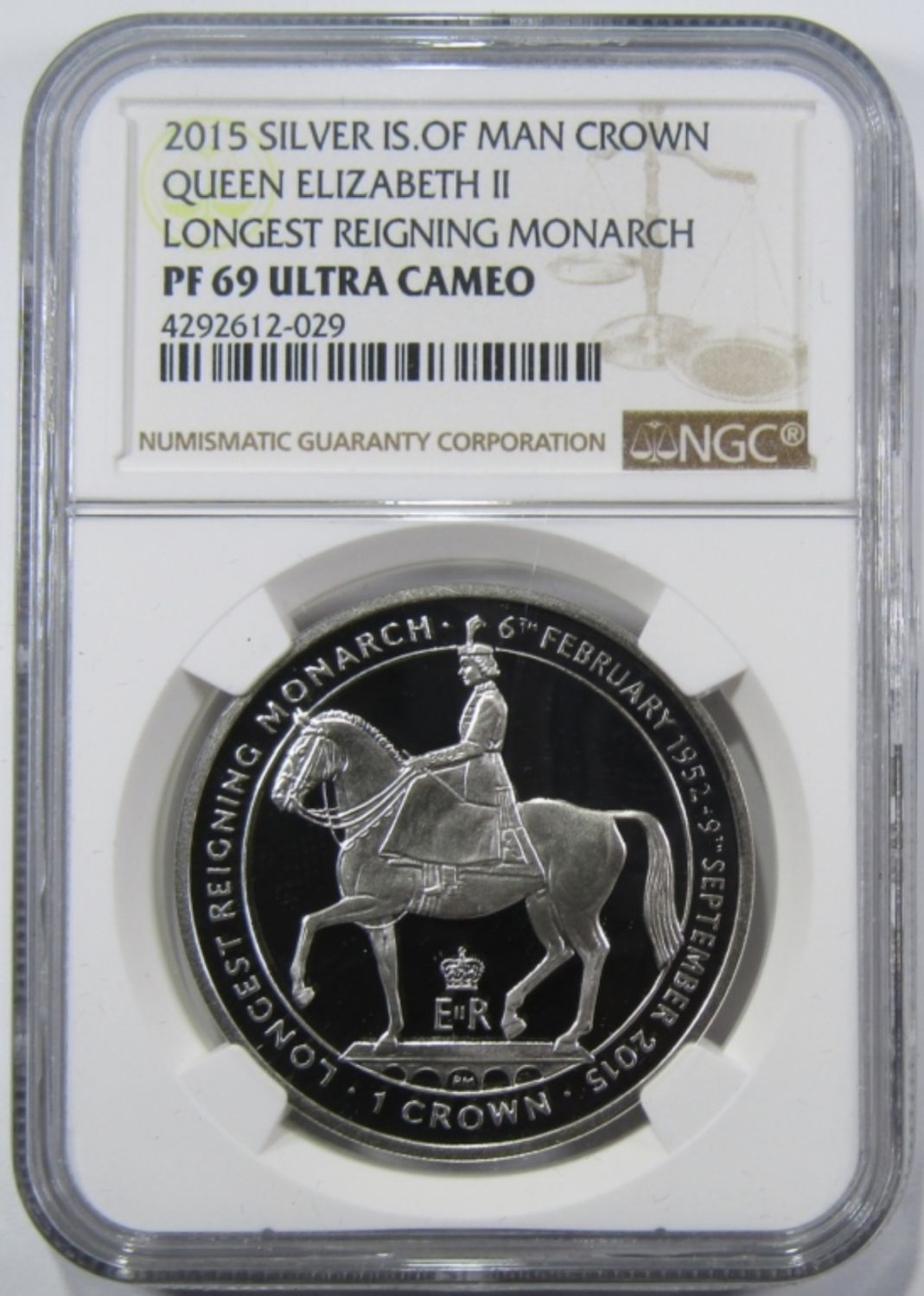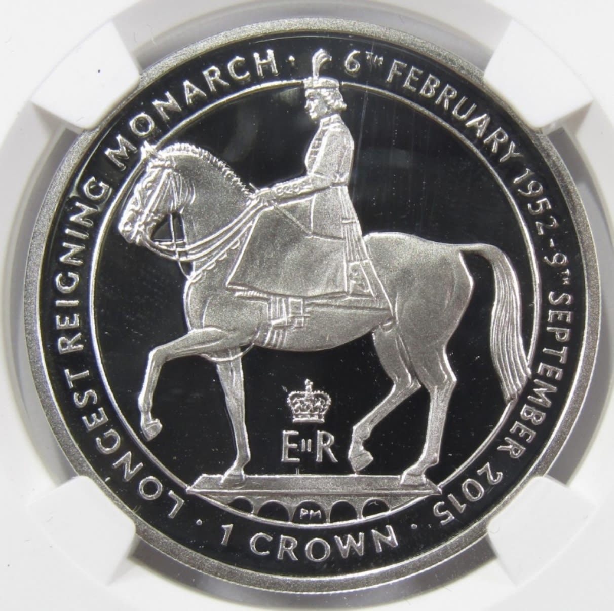 28.28 GRAMS .925 SILVER QUEEN ELIZABETH II LONGEST REIGNING MONARCH. IN DISPLAY BOX WITH COA.