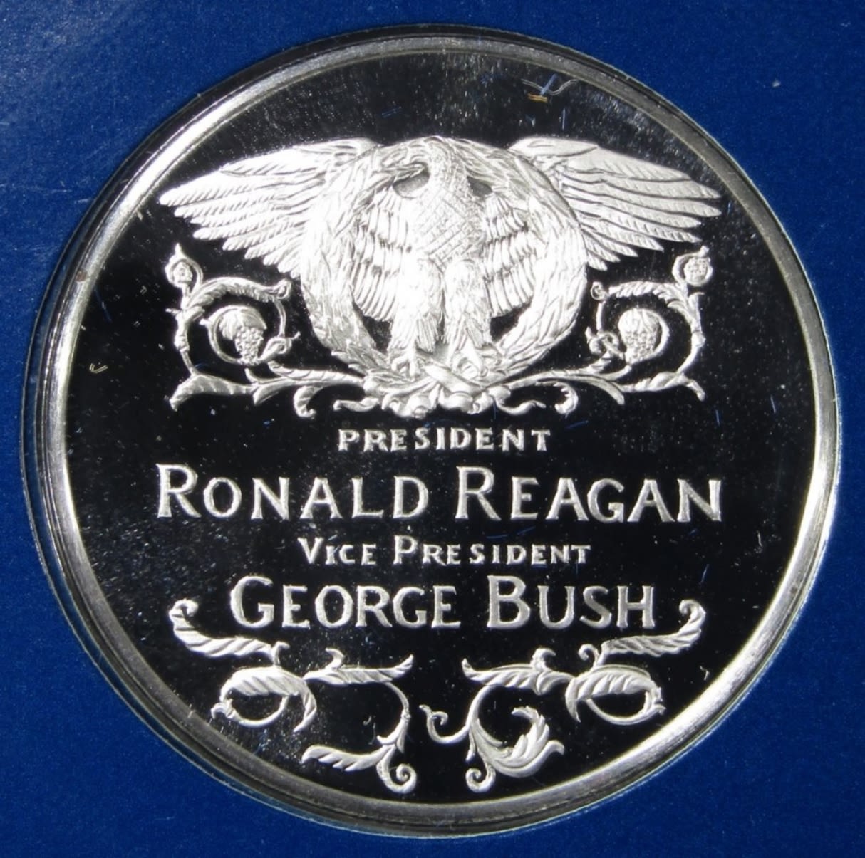 REAGAN & BUSH. THE OFFICIAL INAUGURAL MEDAL LIMITED EDITION PROOF. IN DISPLAY CASE. THE FRANKLIN MINT.