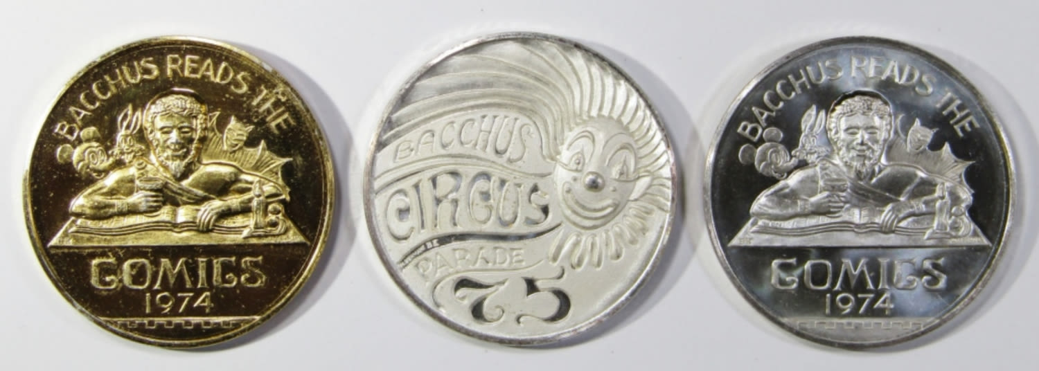 (2) 1974 BACCHUS READS THE COMICS & (1) 1975 BACCHUS CIRCUS PARADE