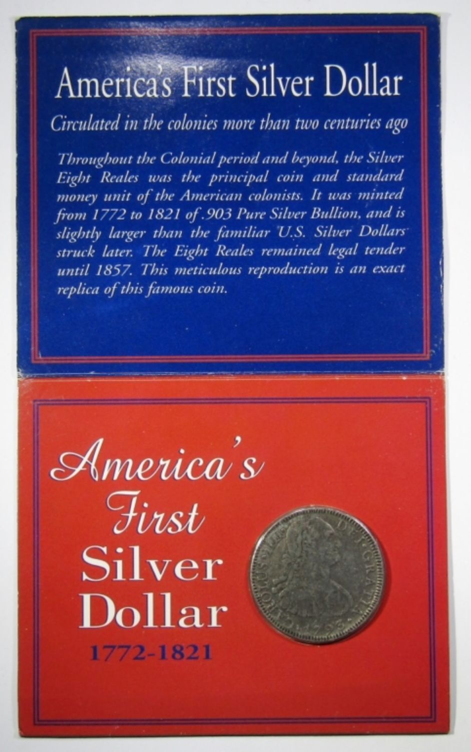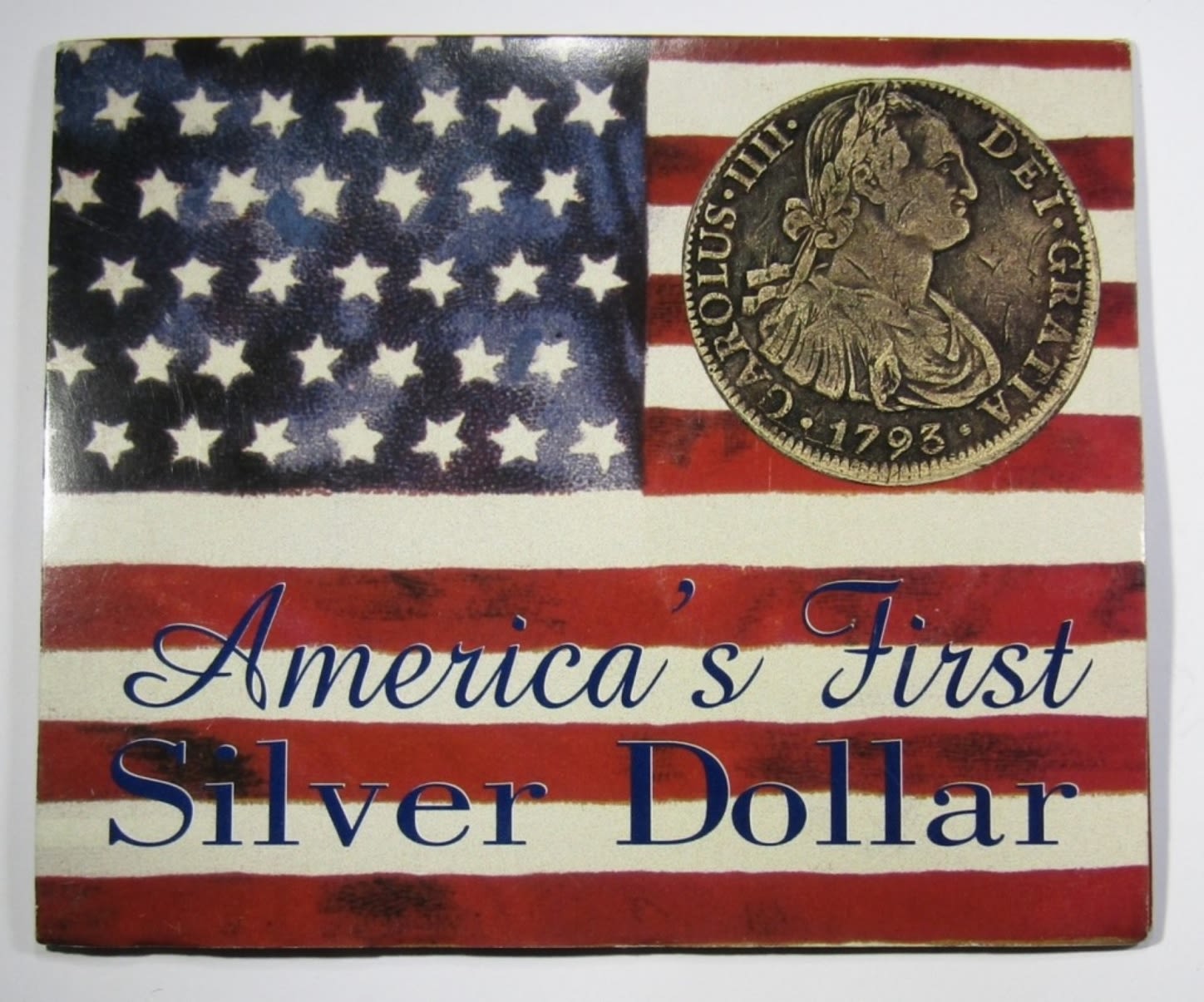 AMERICA’S FIRST SILVER DOLLAR. IN AMERICAN HISTORIC SOCIETY CARD.