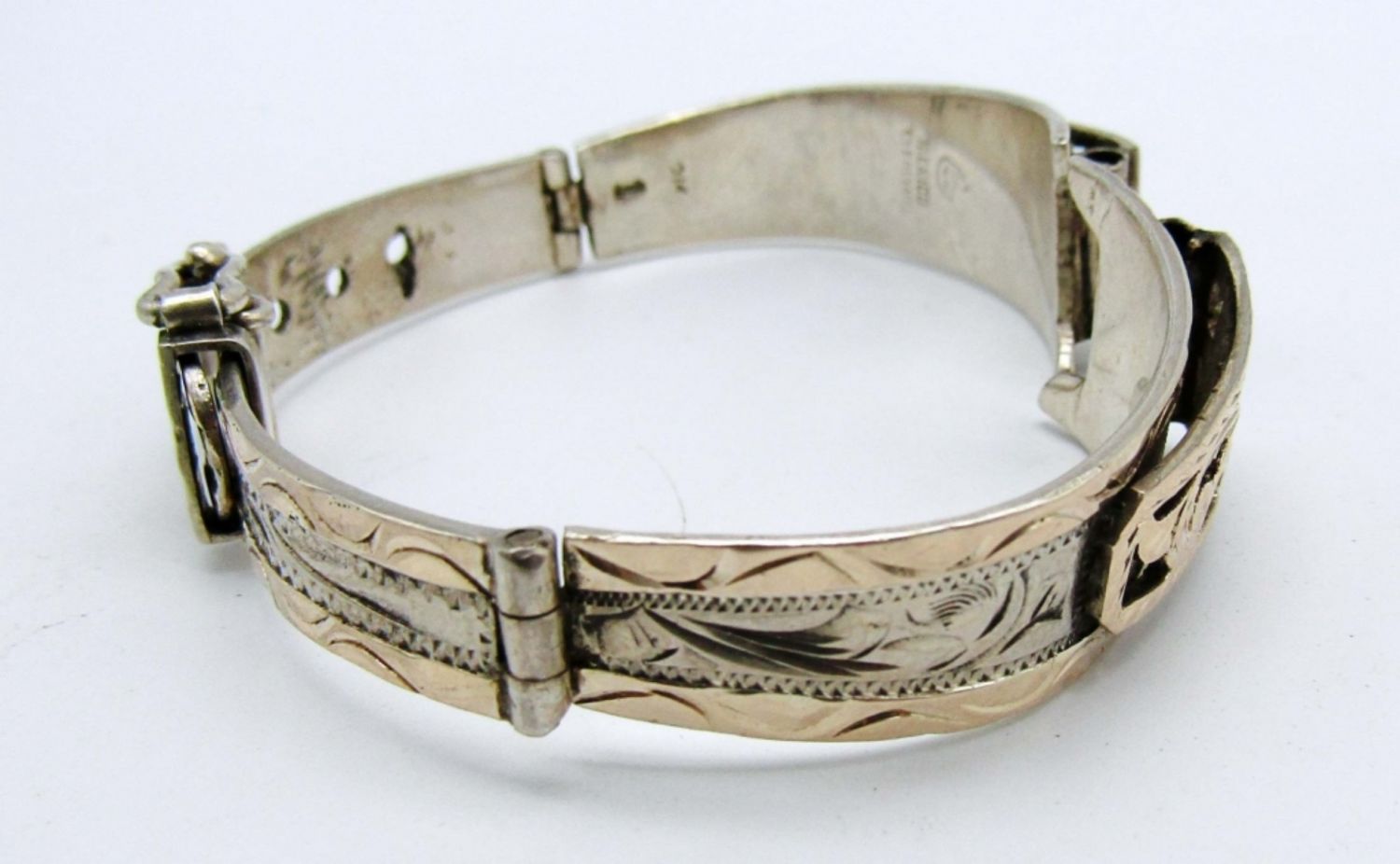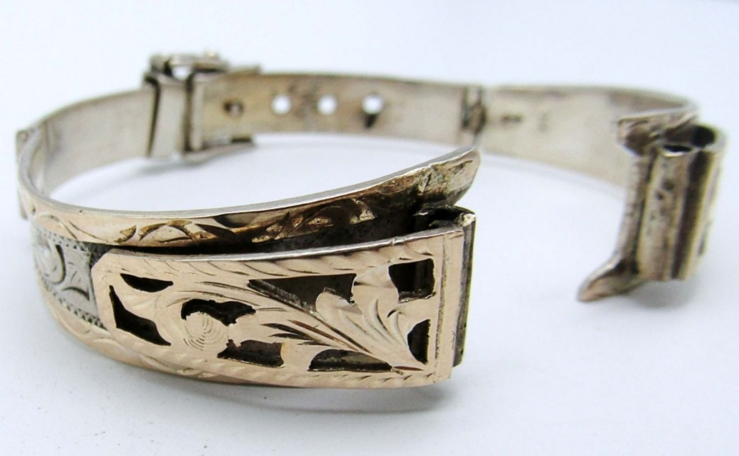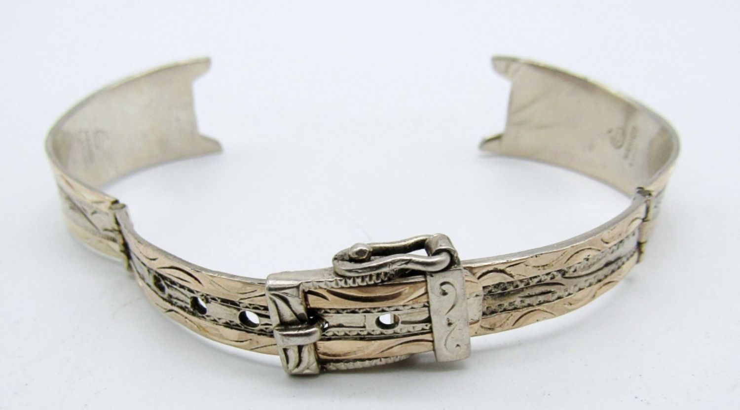 13dwt,stamped 10k, mexico sterling,unique design to look like a belt with the clasp like abelt buckle 10k all alond the band,will beed a watch face