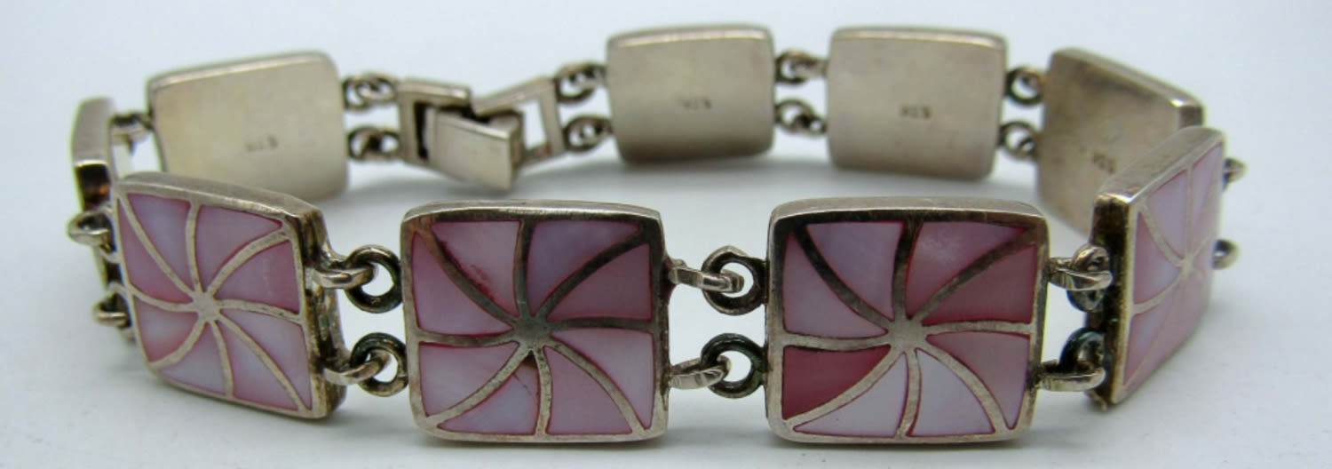 17dwt,17 1/2in,open box clasp, 925 stamped on each panel of bracelet