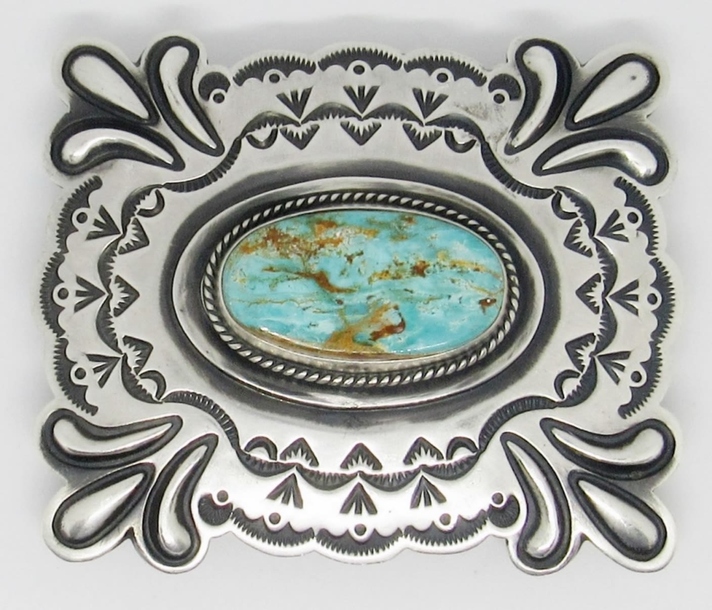 47.2dwt, stamped with D GORDON and STERLING, Turquoise stone in the middle of the buckle with a stunning design around.