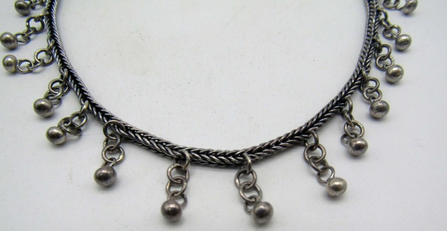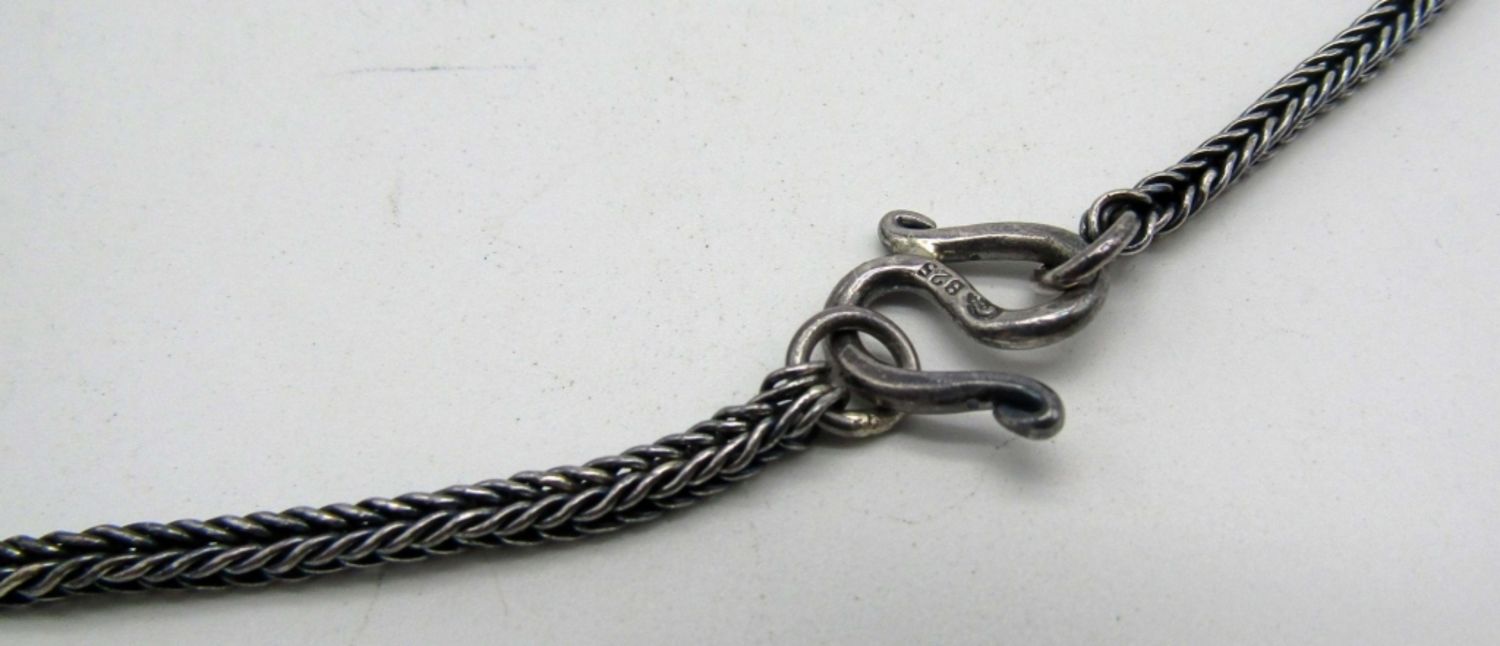 14dwt,16in foxtail chain with little sterling beads dangling in the middle, stamped 925 on hook clasp