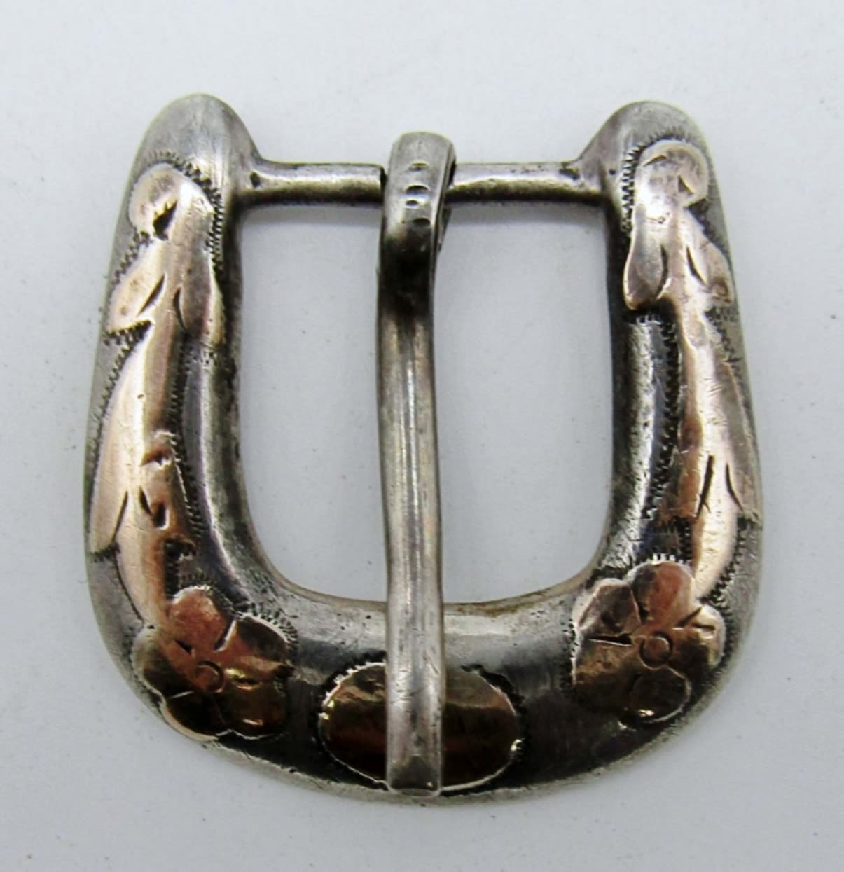 11dwt, gold filled flower design around buckle, stamped with mexico and sterling