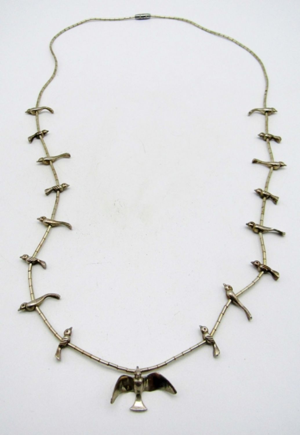 12 dwt, 26in , little bars of sterling with sterling birds between them, has a screw clasp