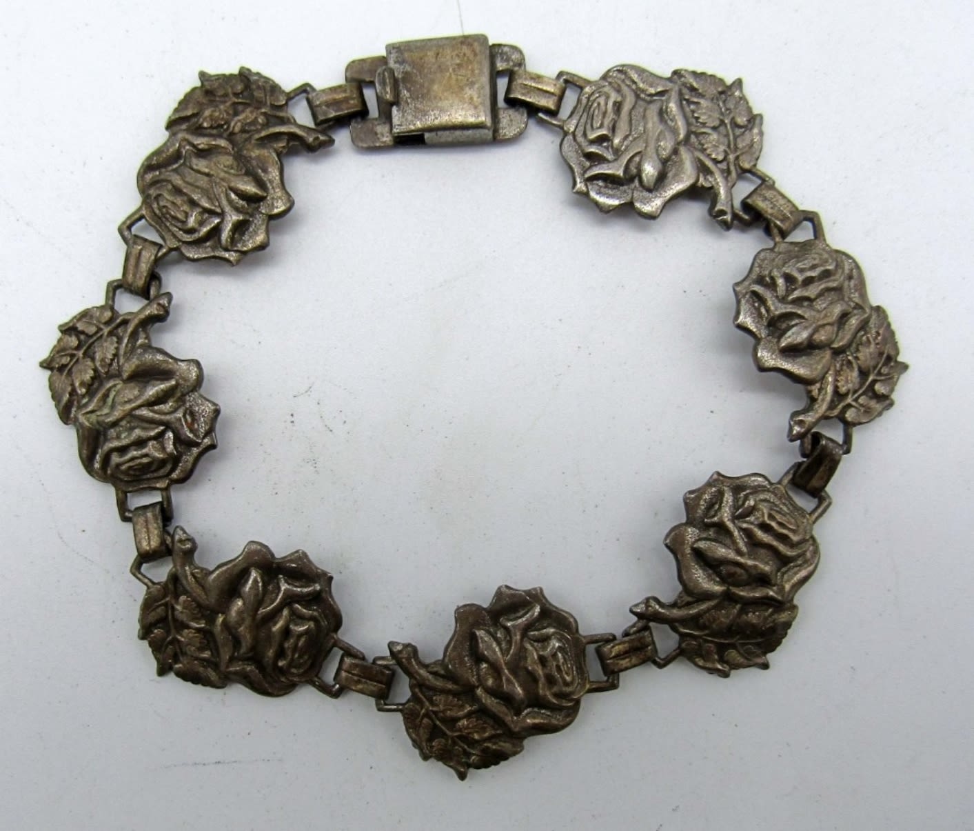 9dwt, 7 1/2in, box clasp, made in the 1940s according the patten number stamped on back of clasp PAT 2368543 STERLING
