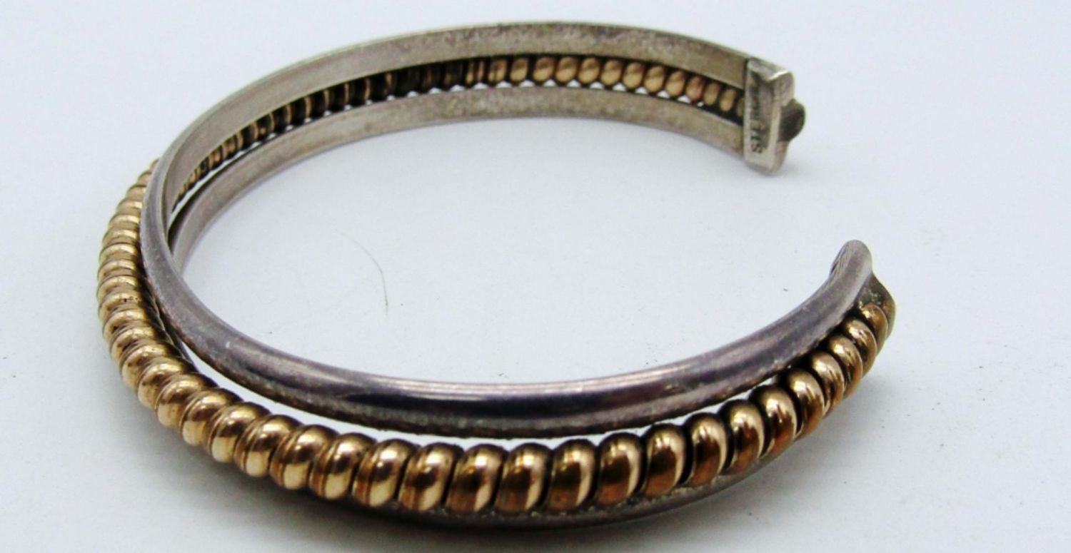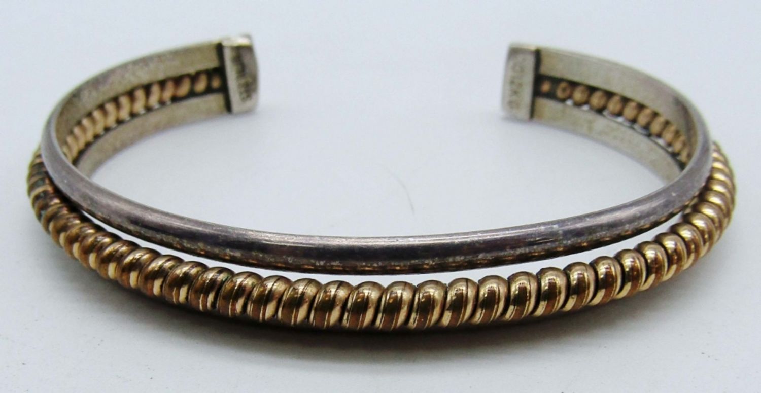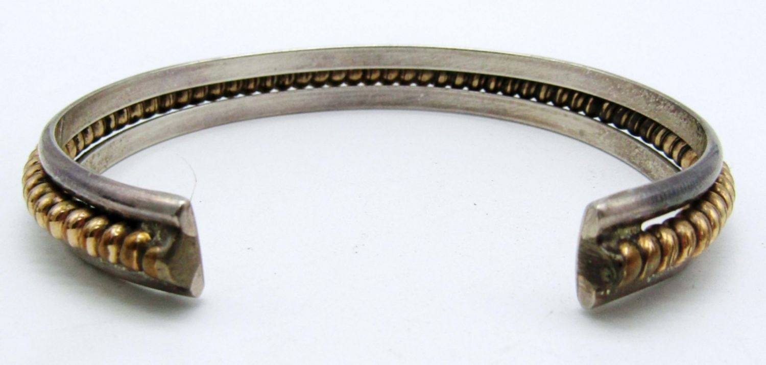 13DWT.7 in with gap,a twisted gold filled bar in the middle of cuff, stamped sterling and 12kg inside cuff