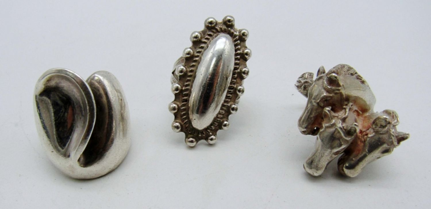 18.8dwt, a horse ring size 6 stamped 925, a oval ring size 7 1/2, size 6, stamped sterling