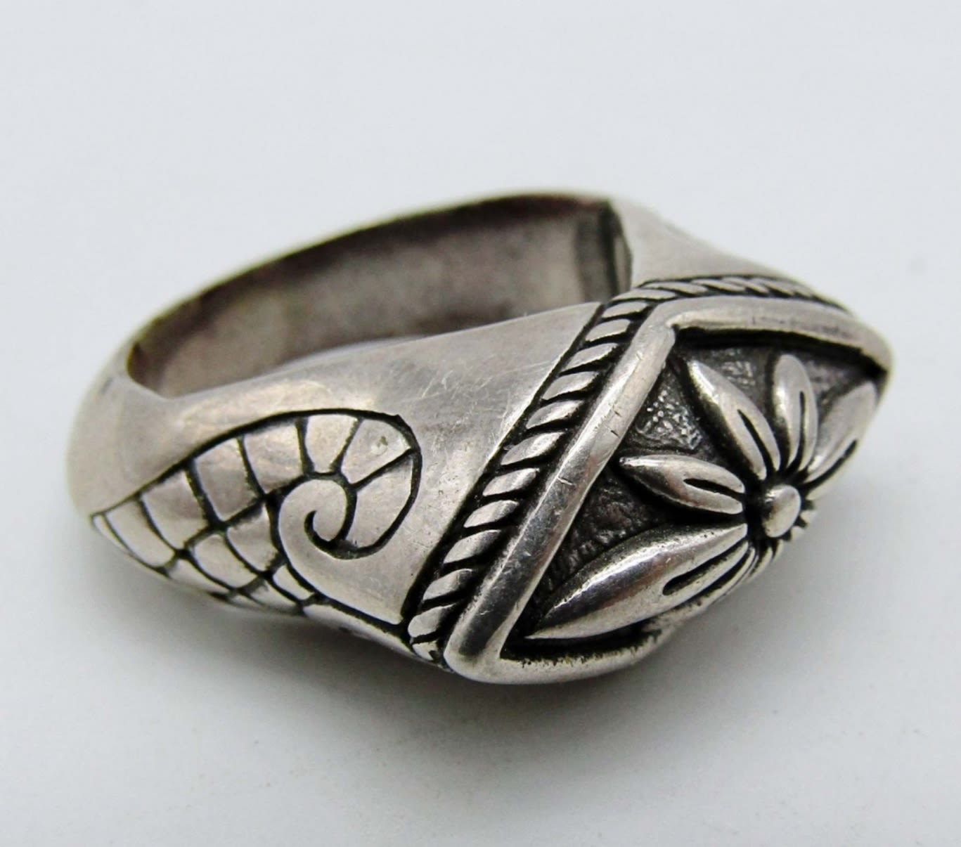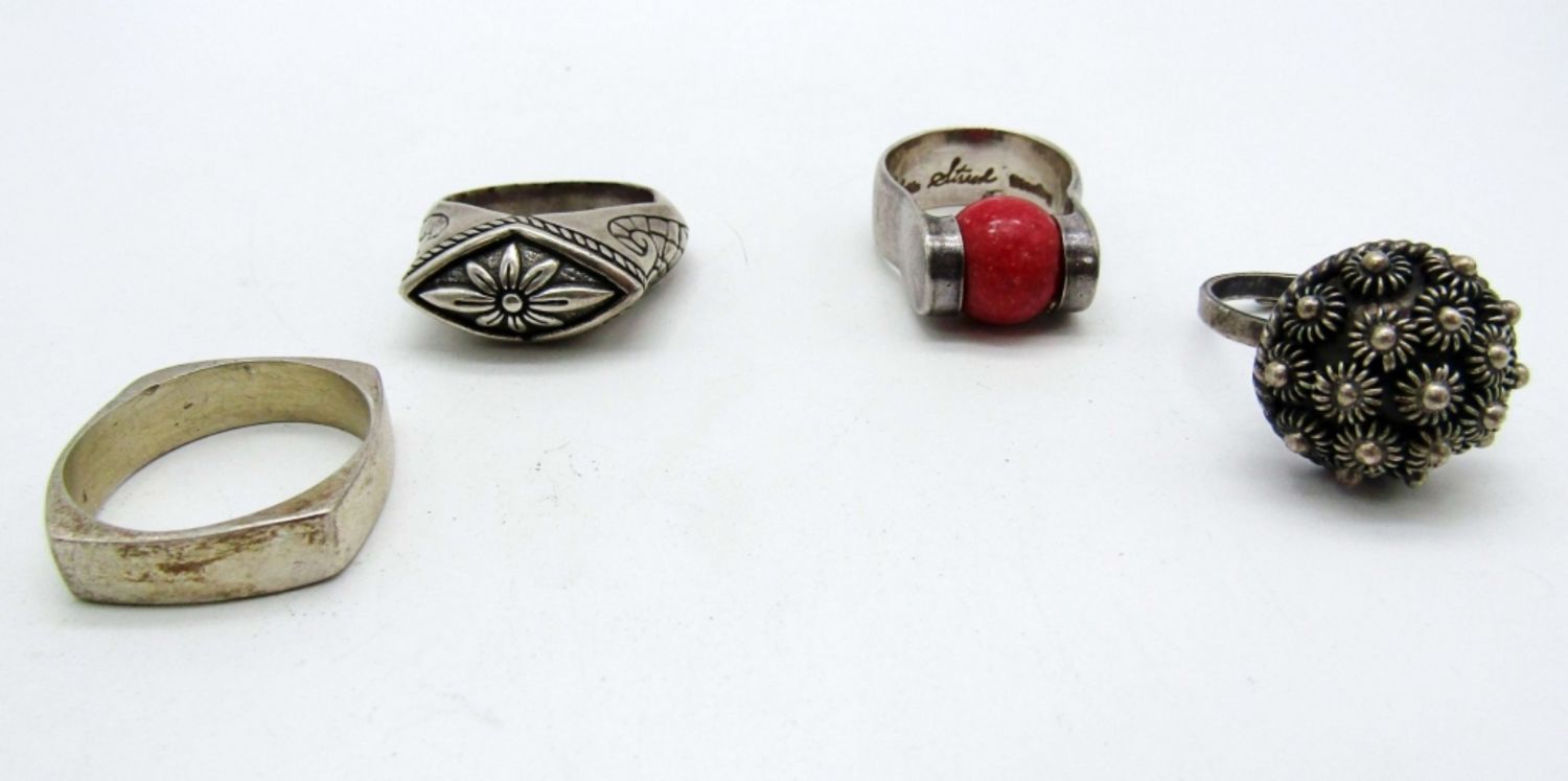 27.5dwt,size 8 a vintage ring with a red natural bead that moves around,size 8 1/2 flower in the middle with a design on the side,size 9 a bouquet of flowers, size 11 solid sterling ring
