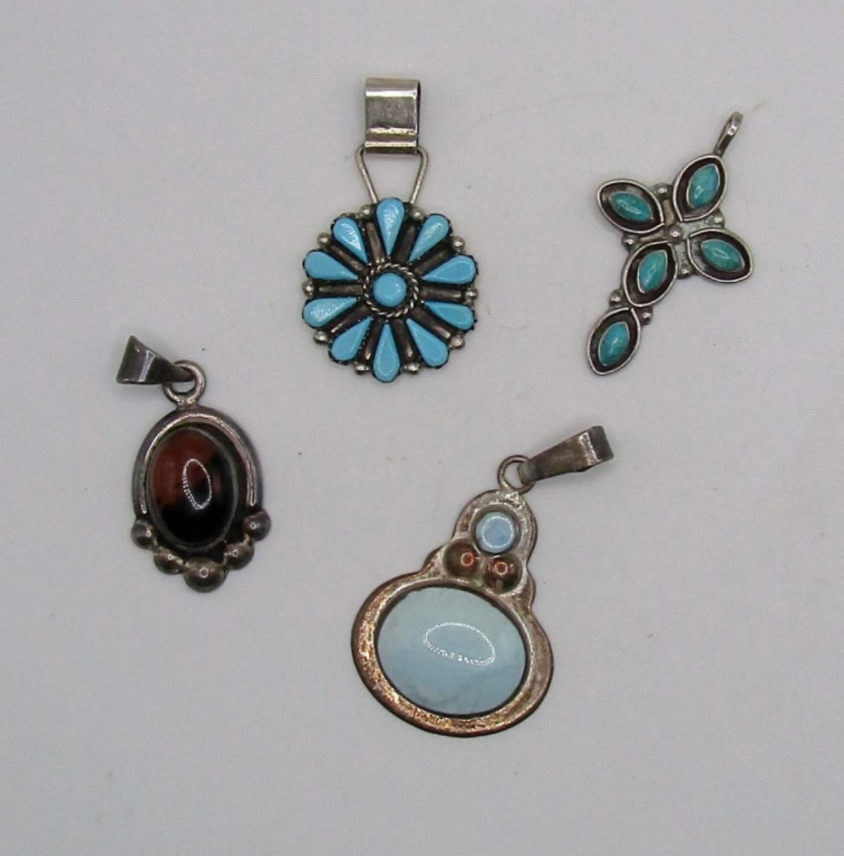 14.6dwt, all stamped 925, the turquoise flower is also marked V.Martz also a Zuni piece