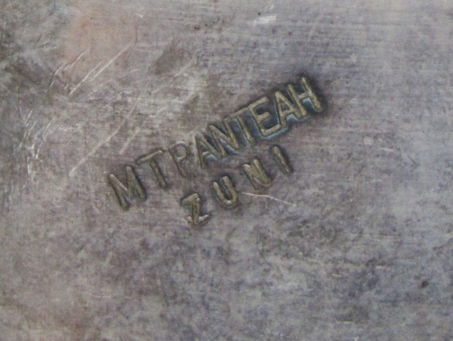 82.8dwt, stamped with MTPANTEAH ZUNI inside the band, cuff style band, with turquoise and coral stones. Has mother of pearl, will need REPAIR missing two of the mother of pearl stones. 8IN WITH GAP