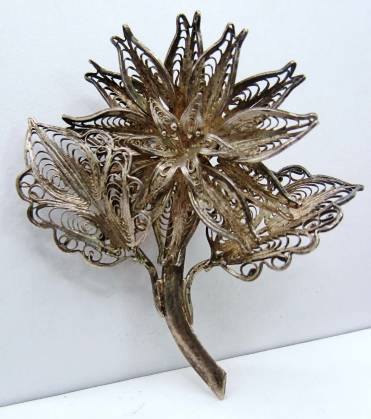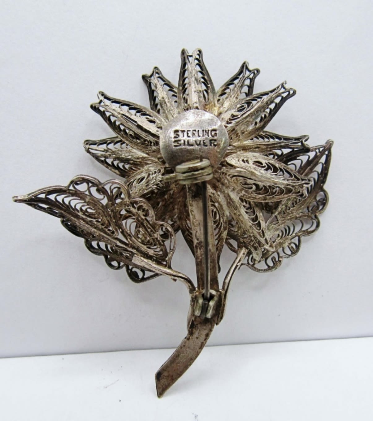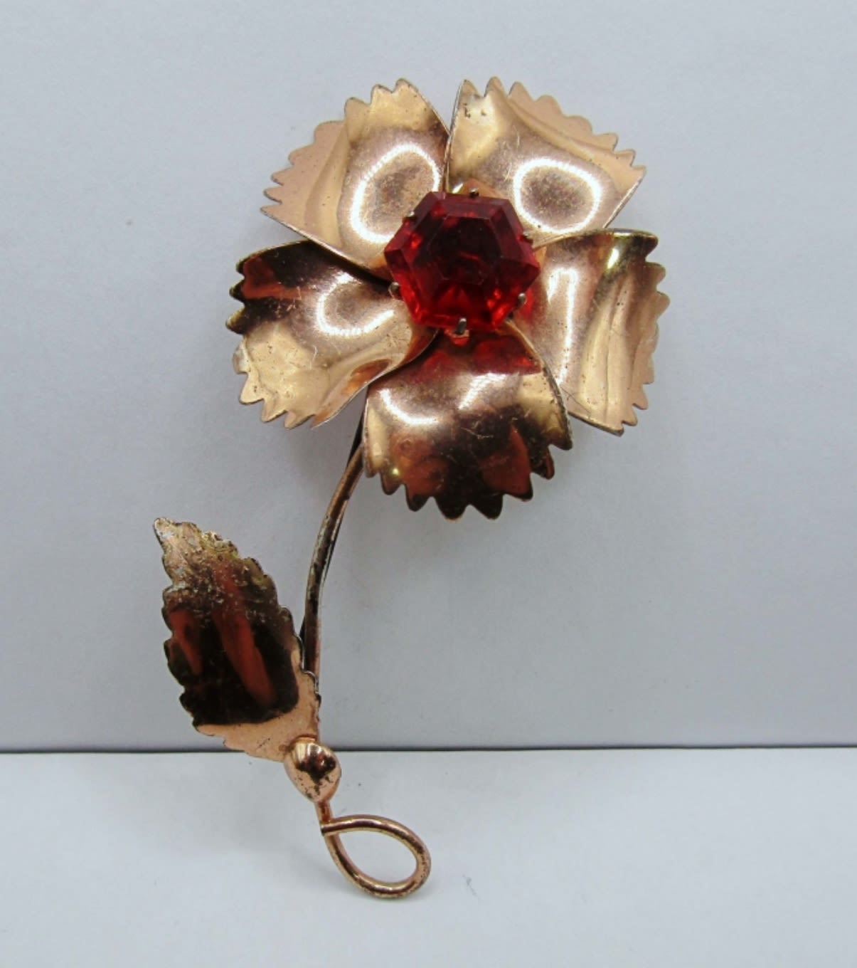 12.5dwt, gold tone with red stone in the middle of flower, stamped Sterling By Jordan about 3in, second is about 2in stamped sterling sliver