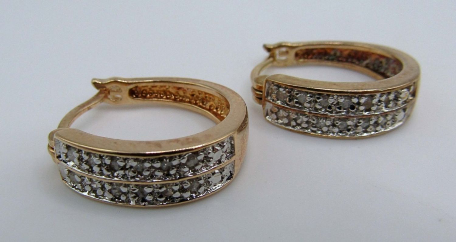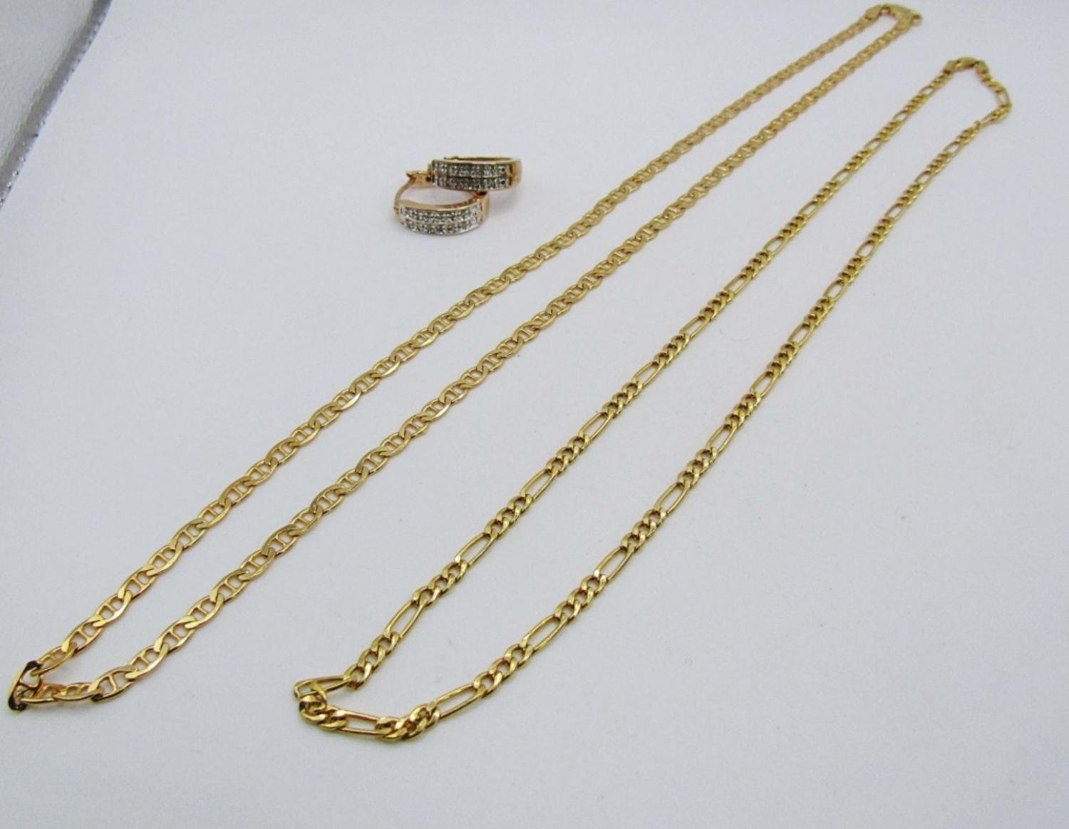 11dwt, pair of huggies earrings pirced have clear stones stamped 925, both necklace are stamped 925 and 19in and 20in in length