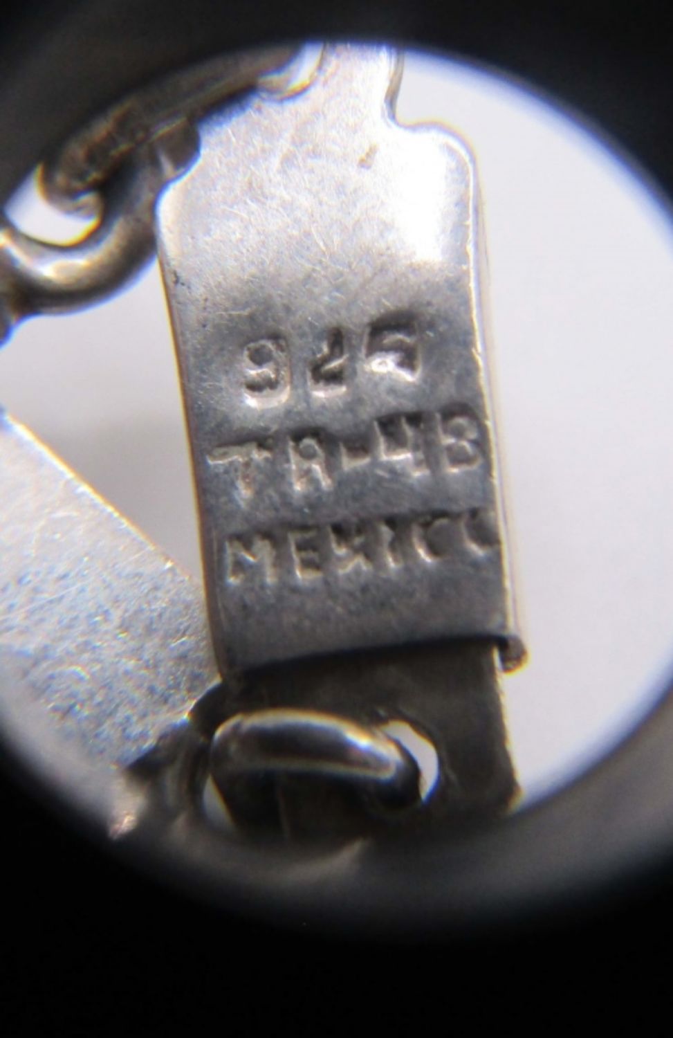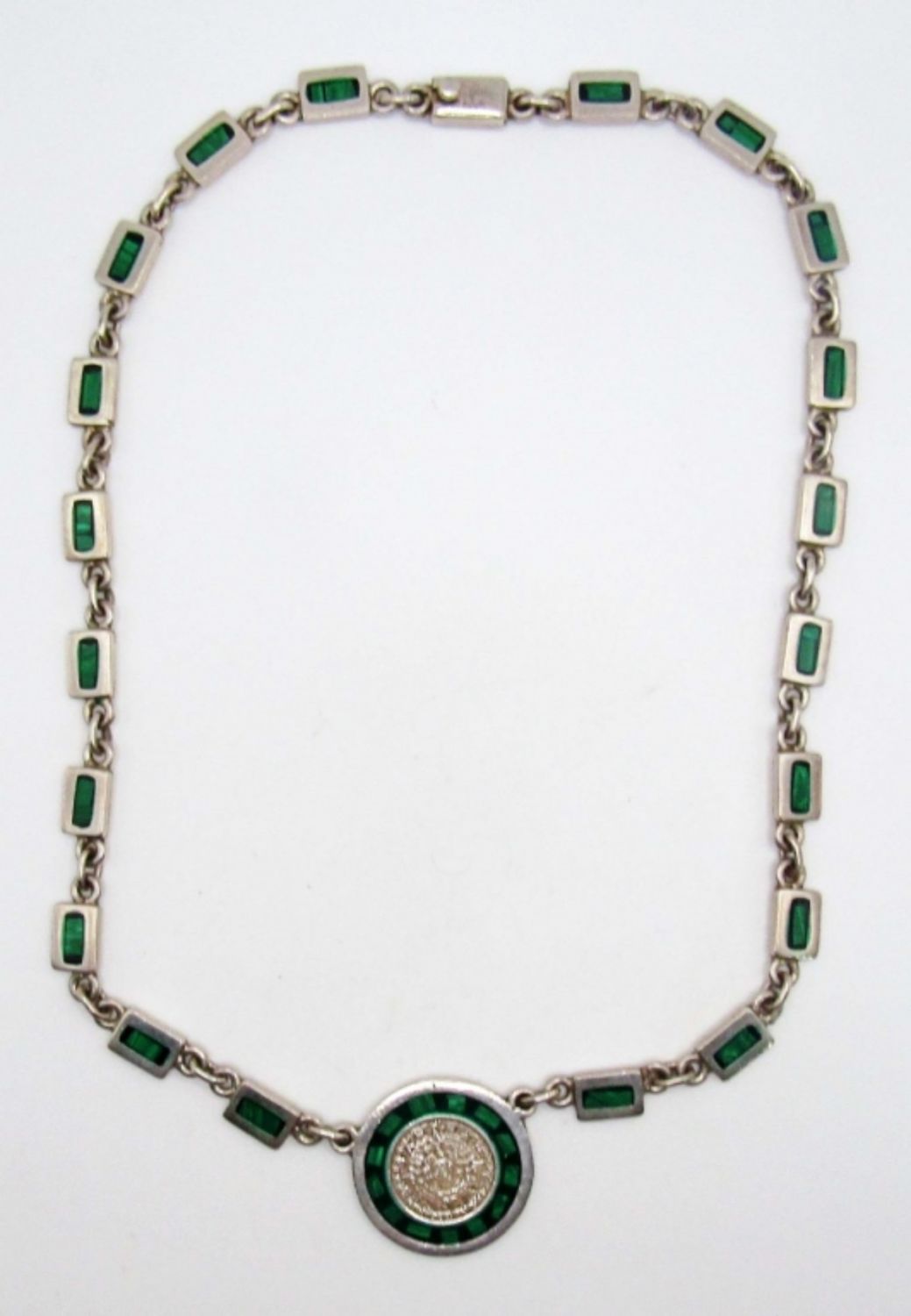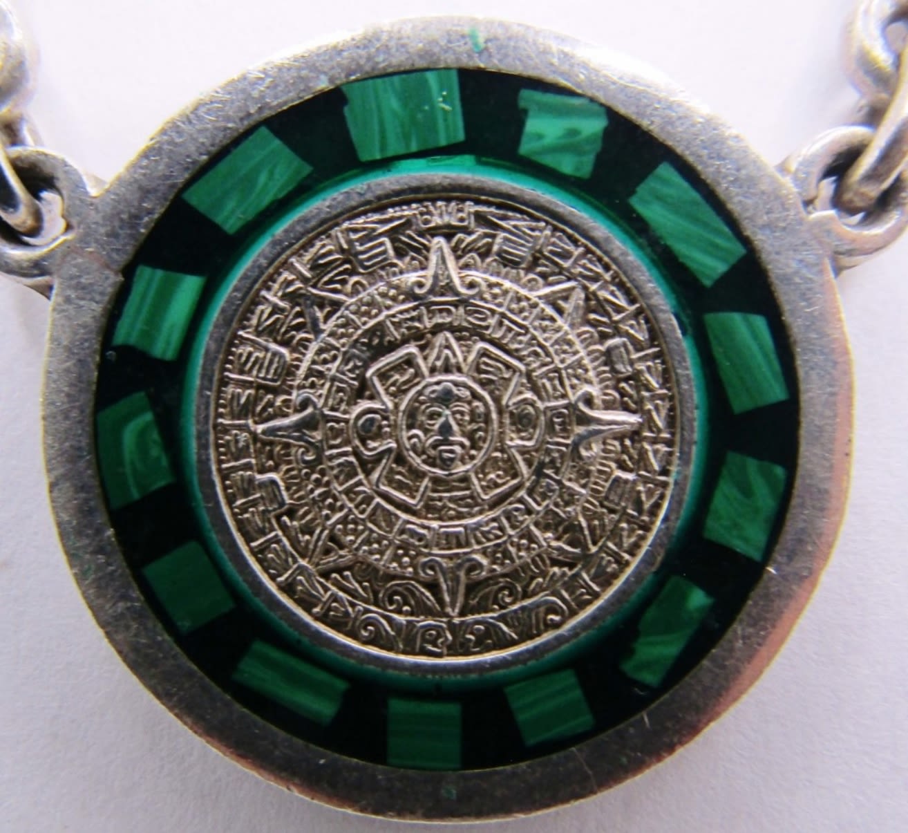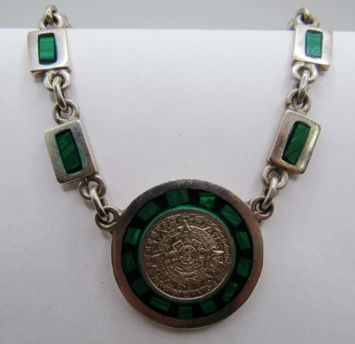 32.7dwt, 19in with pendant, has a Aztec pendant, stamped TA-48 Mexico, open box clasp