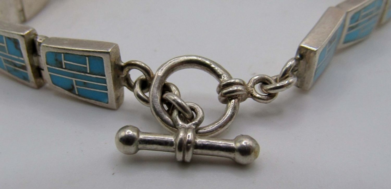 20.6dwt, cuff stamped sterling, inaly stone stamped sterling on toggle clasp