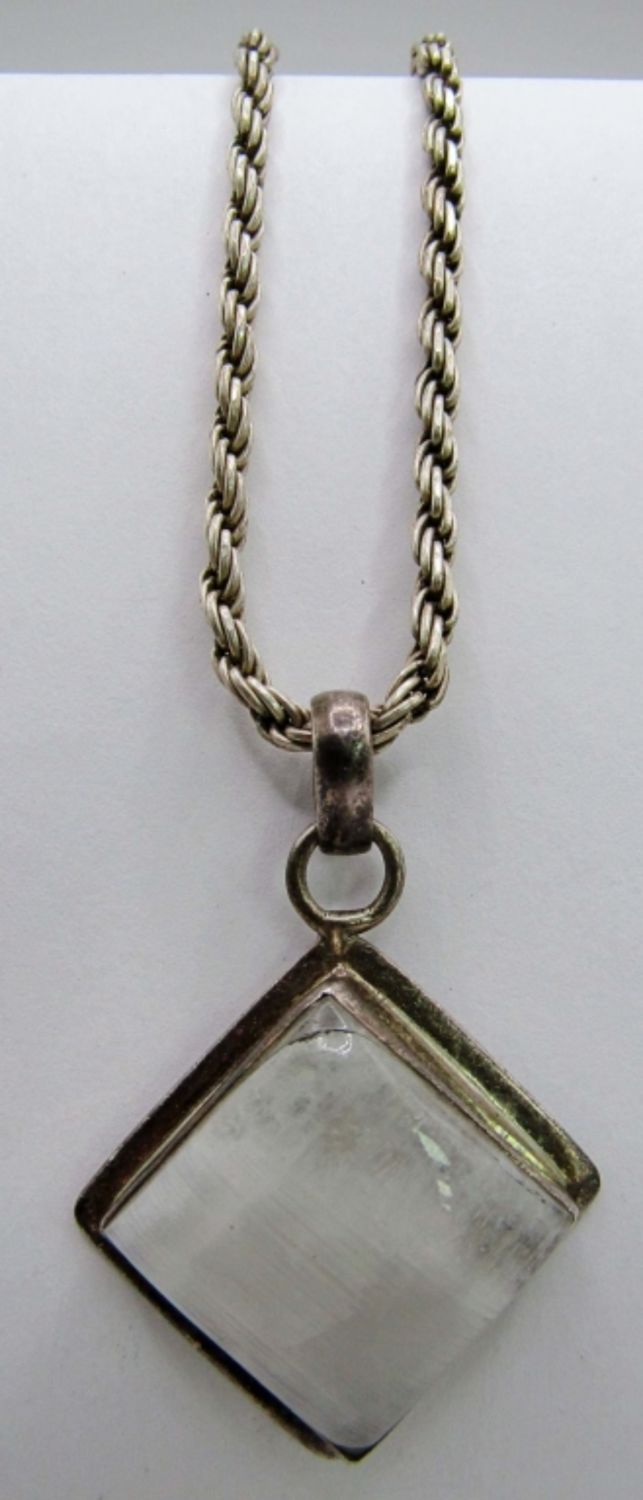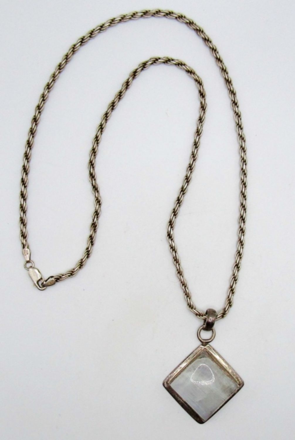 23dwt,22in length, white stone in pendant, stamped 925 Italy