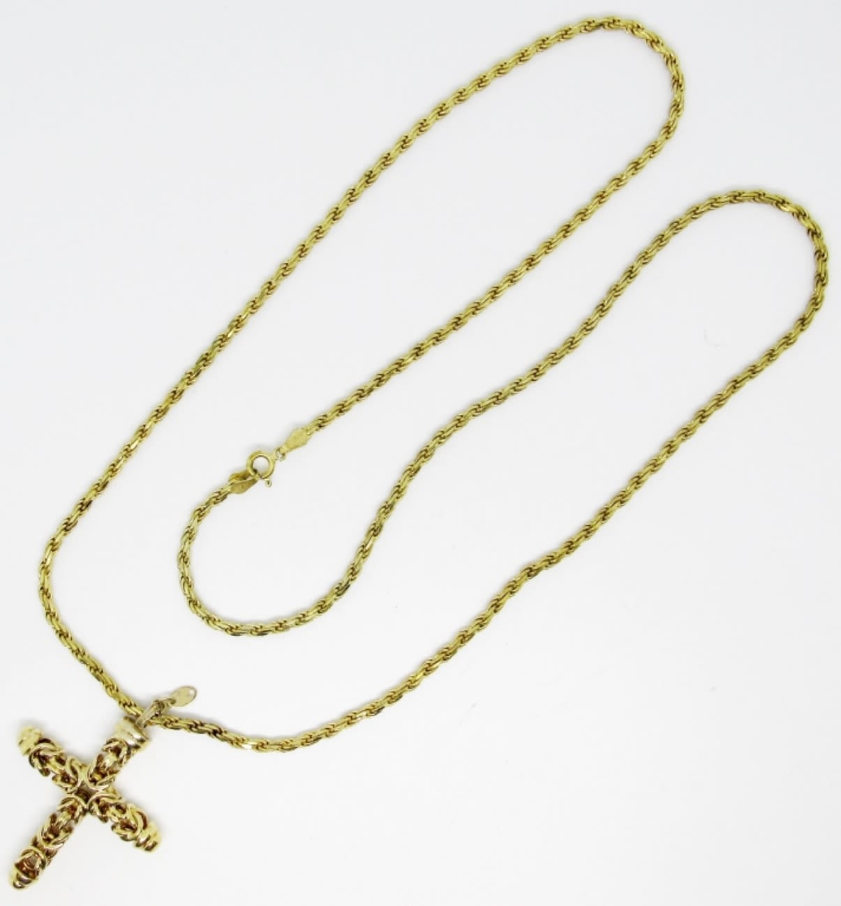 20dwt, 30in chain length, a woven cross with a 925 ITALY, a rope chain marked with 925 Italy on the spring ring clasp