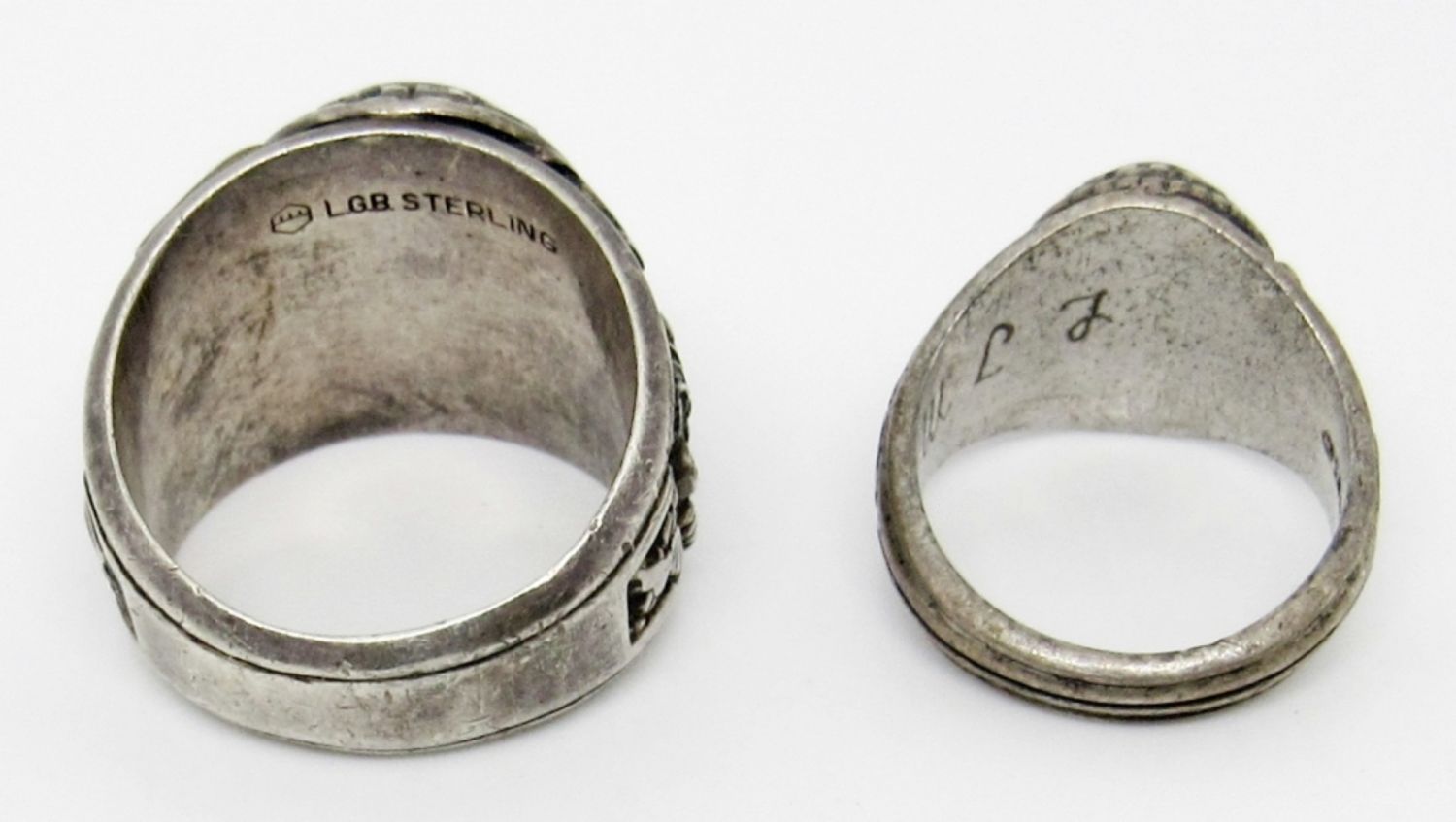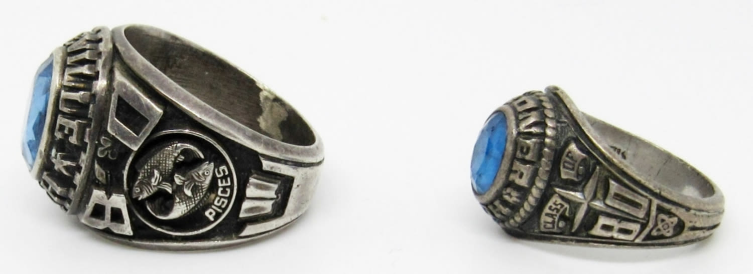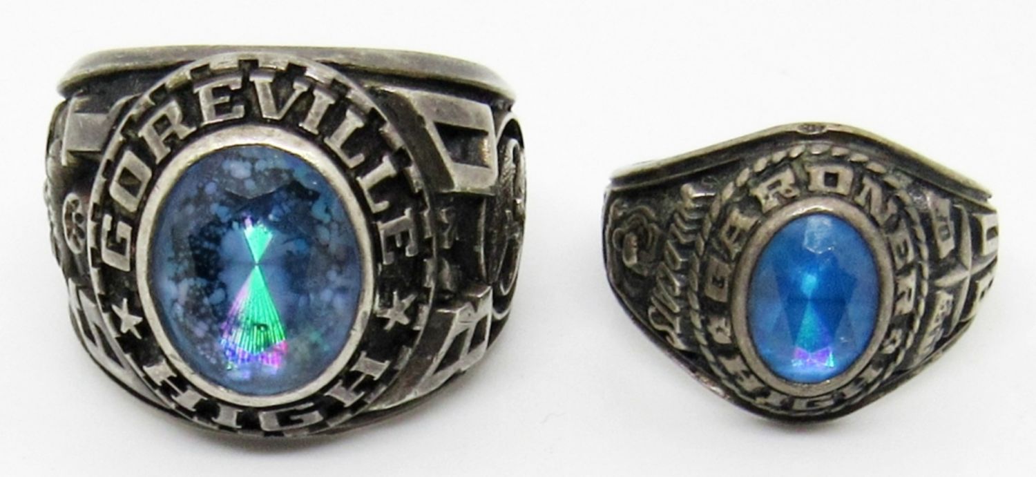 13dwt, Goreville High- size 8.5 topaz stone,stamped sterling initials BLD, Gardner High-5.5 topaz stone,stamped sterling with initials L.J.M