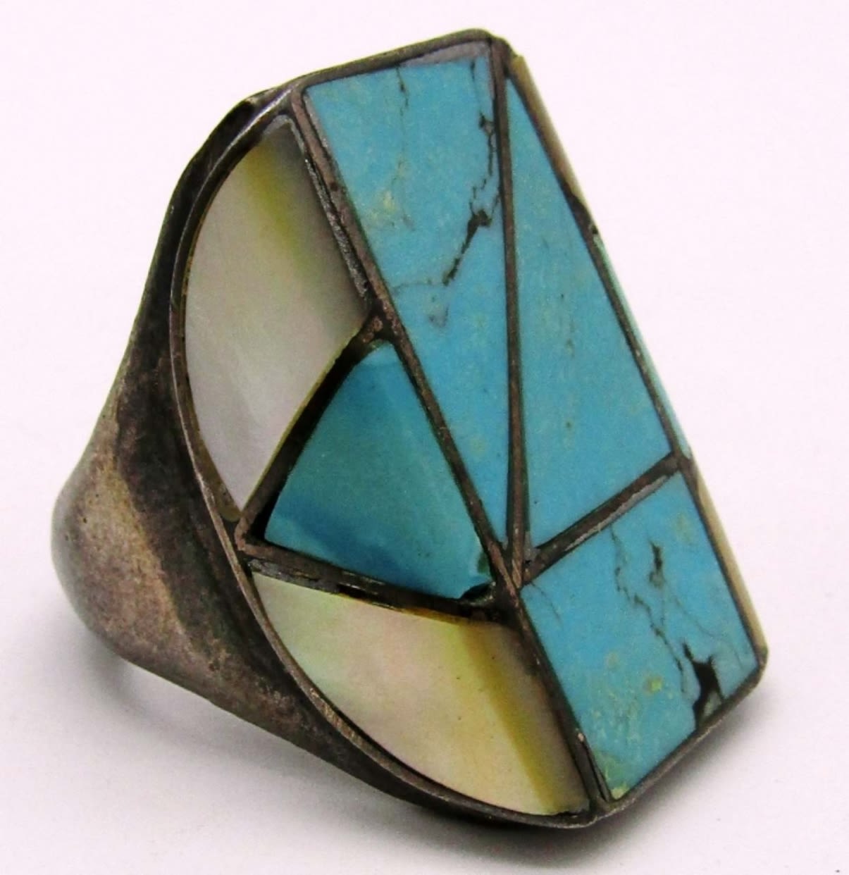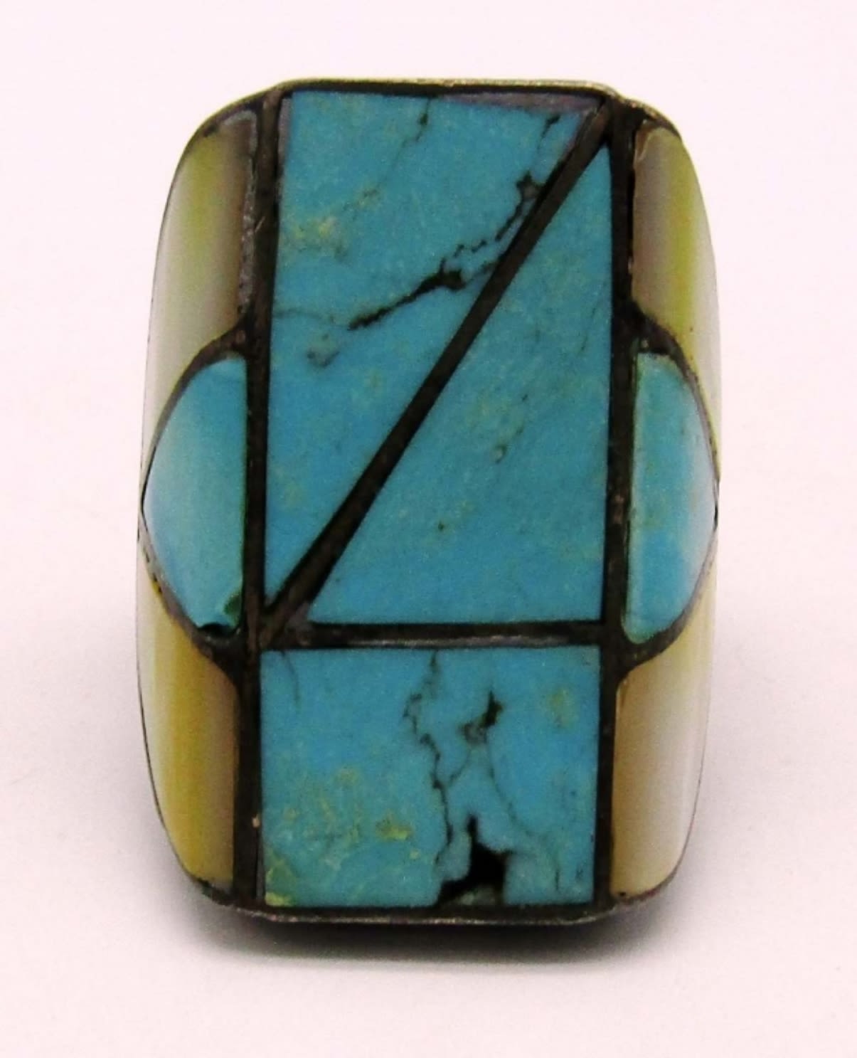18dwt,size 11, Turquoise and Abalone inlay stones, stamped spencer and P.B 1171