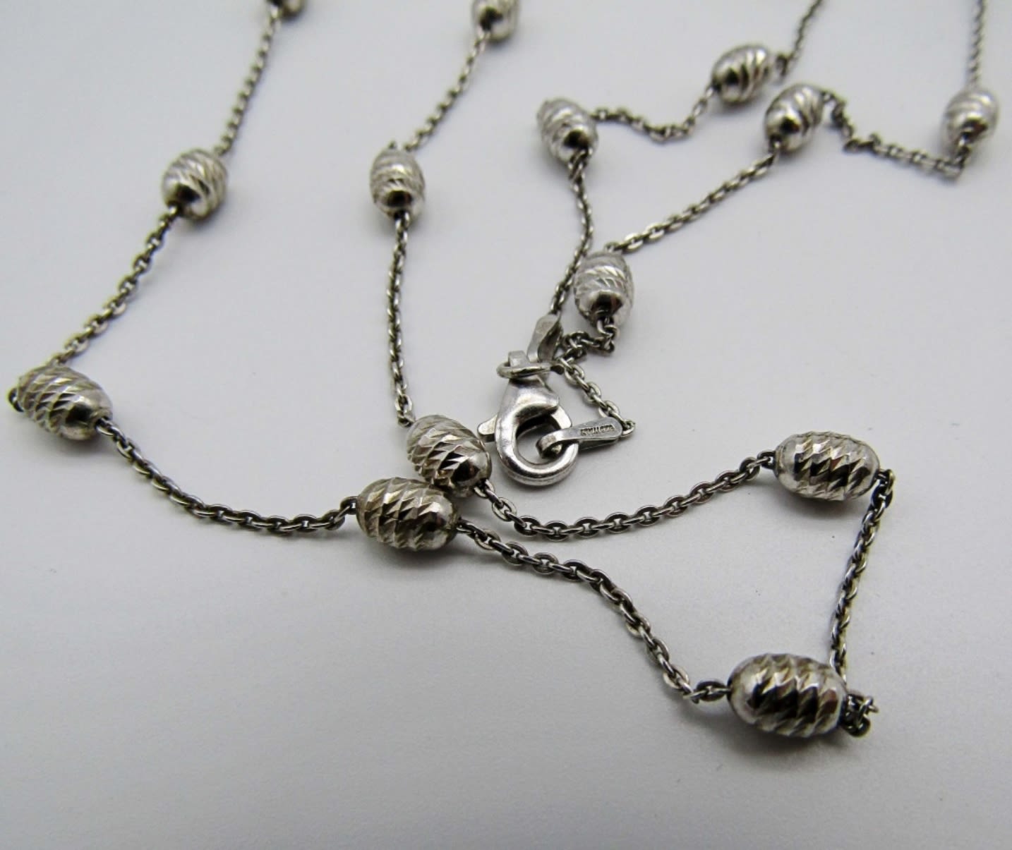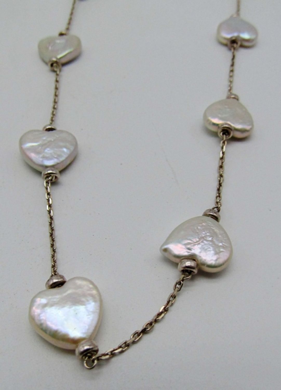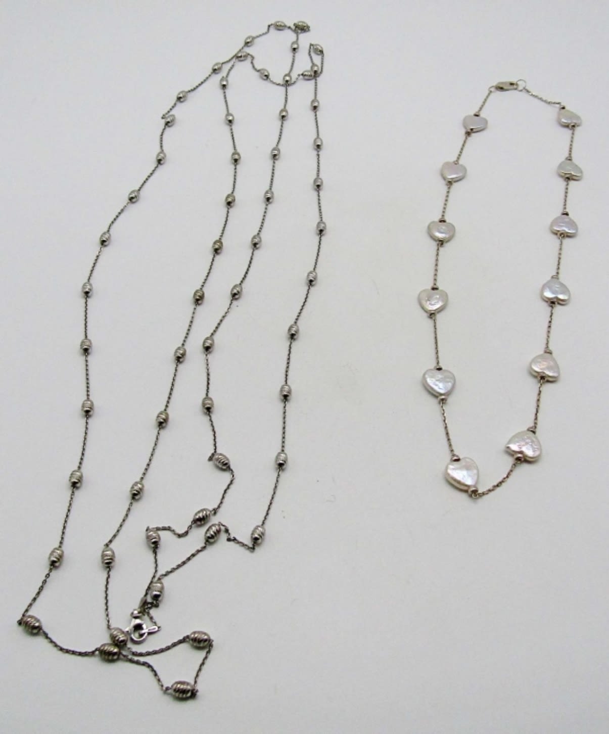 17.5dwt,abalone stone heart necklace in 18in in length stamped 925 on lobster clasp, layered necklace is 60in also stamped with the 925 at the spring clasp