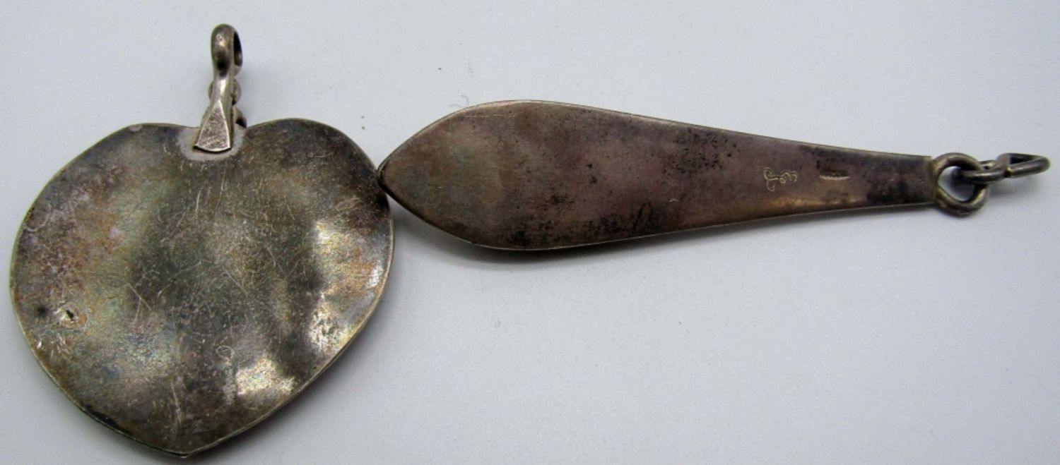 29.5dwt, both have a turquoise stones in the middle of the pendants, marked Sterling