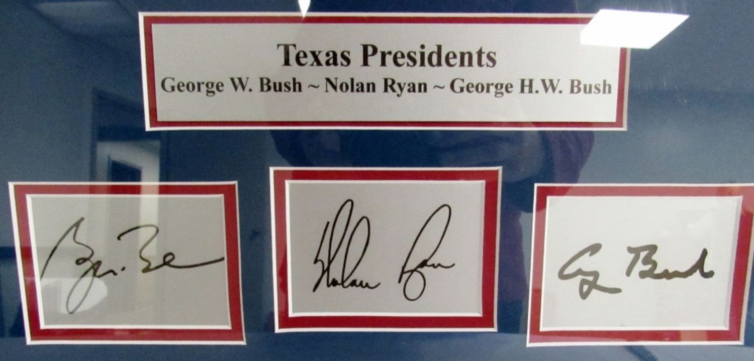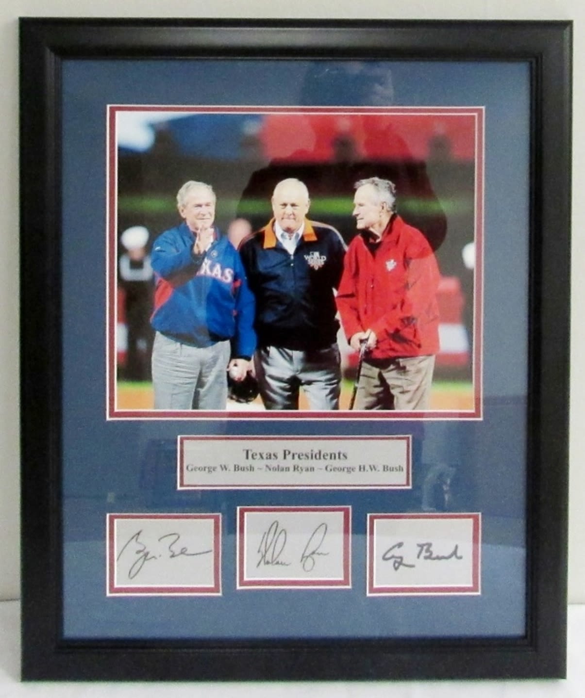 GEORGE H.W. BUSH COMMEMORATIVE PHOTO – FACSIMILE SIGNATURES – FRAMED PIECE 18×22