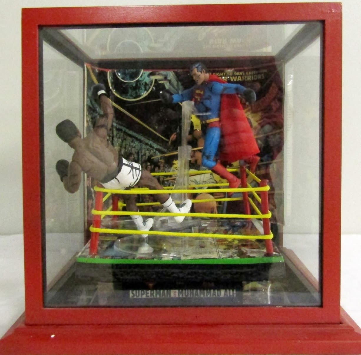 BOXING RING w/SUPERMAN & ALI FIGURINES – AWESOME GLASS DISPLAY