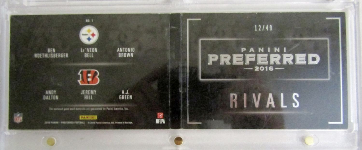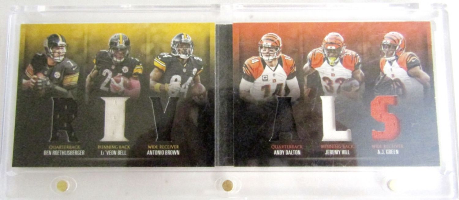 Pittsburgh Steelers – Ben Roethlisberger, Le’Veon Bell, Antonio Brown; Cincinnati Bengals – Andy Dalton, Jeremy Hill, A.J. Green; JERSEY CARDS – RARE / LIMITED