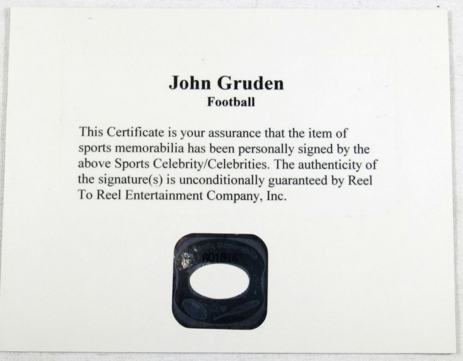 WILSON NFL BALL – COA by To Reel Entertainment Company, Inc.