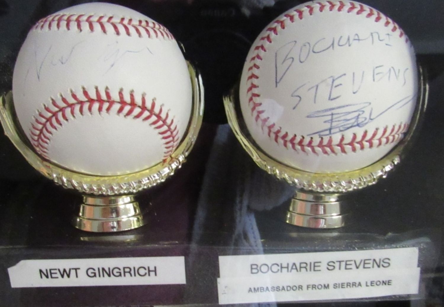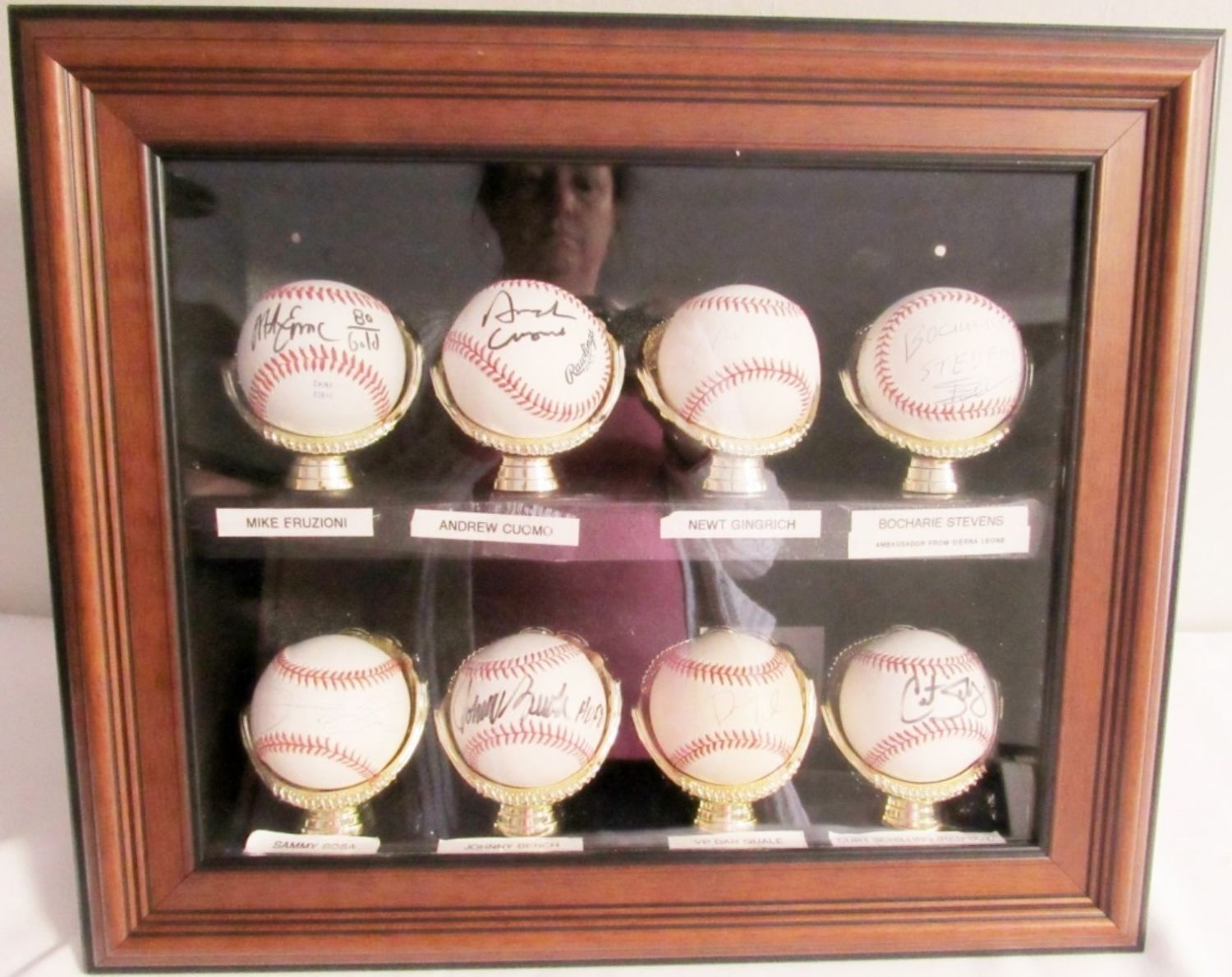 Mike Fruzioni, Andrew Cuomo, Newt Gingrich, Bocharie Stevens, Sammy Sosa, Johnny Bench, VP Dan Quale (With COA), Curt Schilling/Red Sox; In Shadowbox.