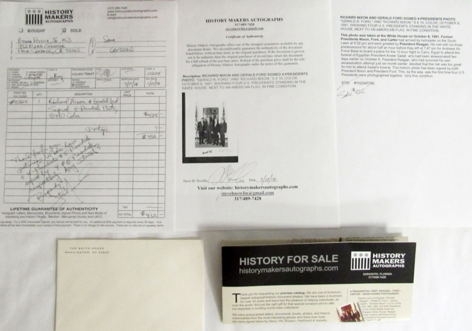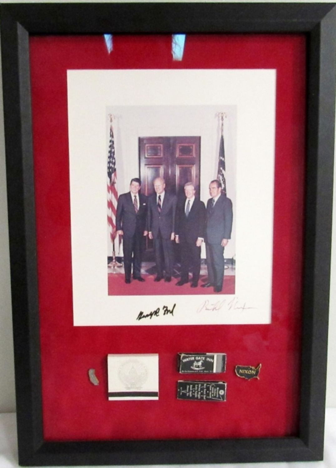 8 x 10 Color Photo of 4 President with Collectible Memorabila in Display Case with COA.