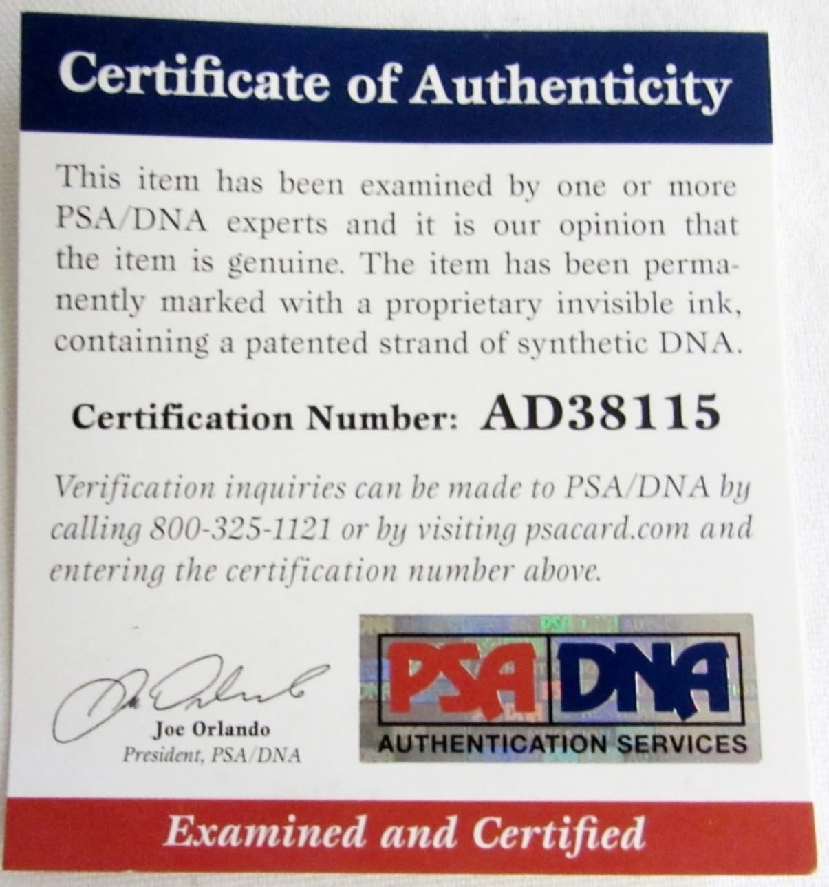 In Case; PSA/DNA Certification